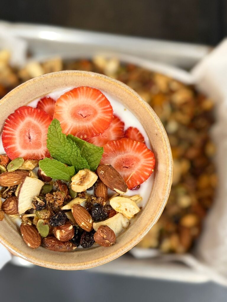 Logo no início da imersão, as professoras retomaram os conceitos que fundamentam essa prática: usar alimentos e combinações que, além de nutrir, ofereçam benefícios metabólicos e preventivos. Por isso, as receitas elaboradas durante a aula exploraram ingredientes com alto teor de fibras, antioxidantes, gorduras boas e baixo teor de açúcar adicionado.