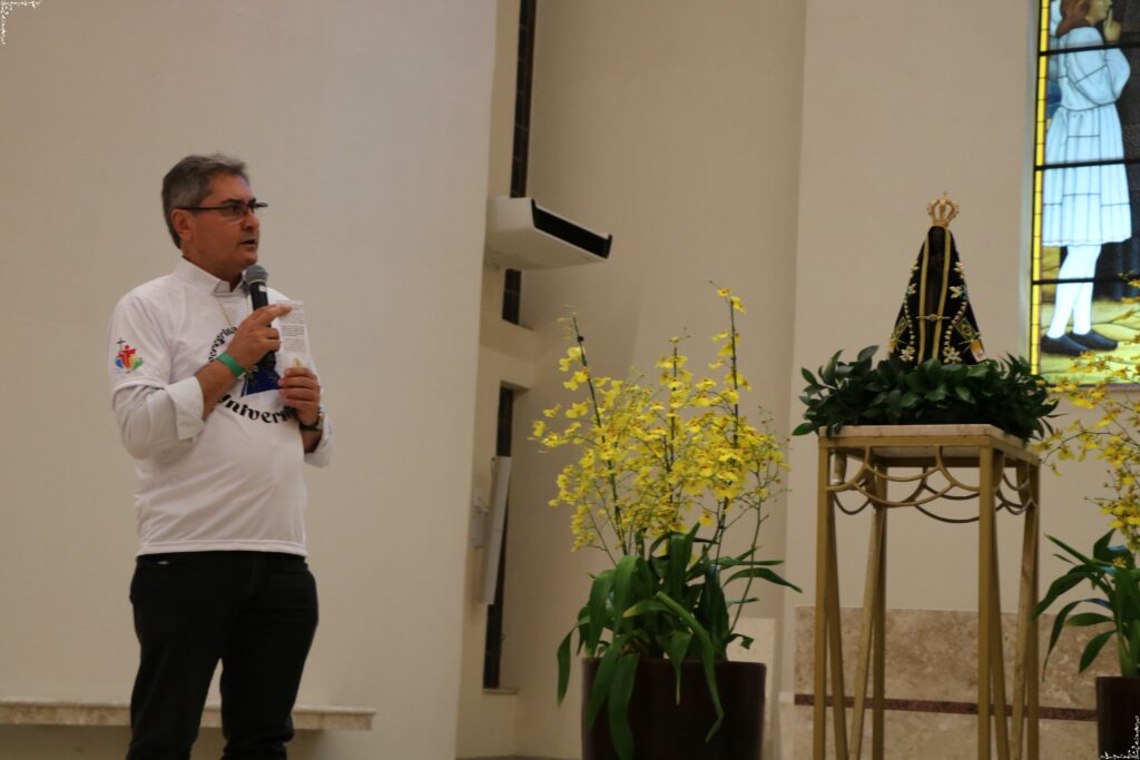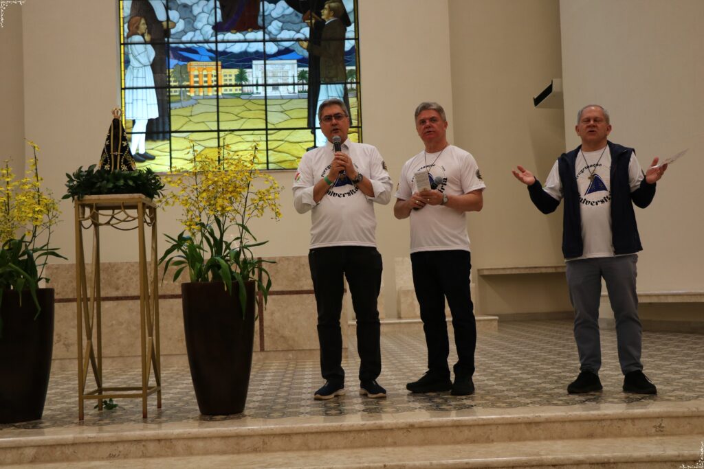 A peregrinação teve início com a Bênção dos Peregrinos, presidida pelo Pe. Paulo Jácomo e pelo Reitor, Pe. Paulo Vendrame, marcando o começo da caminhada sob a proteção divina e em espírito de gratidão. Em cada parada, momentos de silêncio, oração e contemplação reforçaram a espiritualidade mariana e a devoção à Mãe Aparecida.