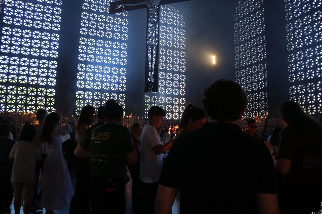 Organizada pela Pastoral Universitária, a atividade integra o calendário anual da Instituição e tem como propósito oferecer momentos de reflexão e de fortalecimento da vida espiritual. Durante o trajeto, os peregrinos participaram de orações, celebrações e bênçãos conduzidas pelo Pró-Reitor de Pastoral, Pe. Paulo Jácomo, além de visitarem importantes pontos de devoção, como a Basílica Antiga, a Passarela da Fé, a Sala das Velas, a Sala das Promessas, o Caminho do Rosário, o Morro do Presépio, a Torre Brasília e a Cúpula da Basílica.