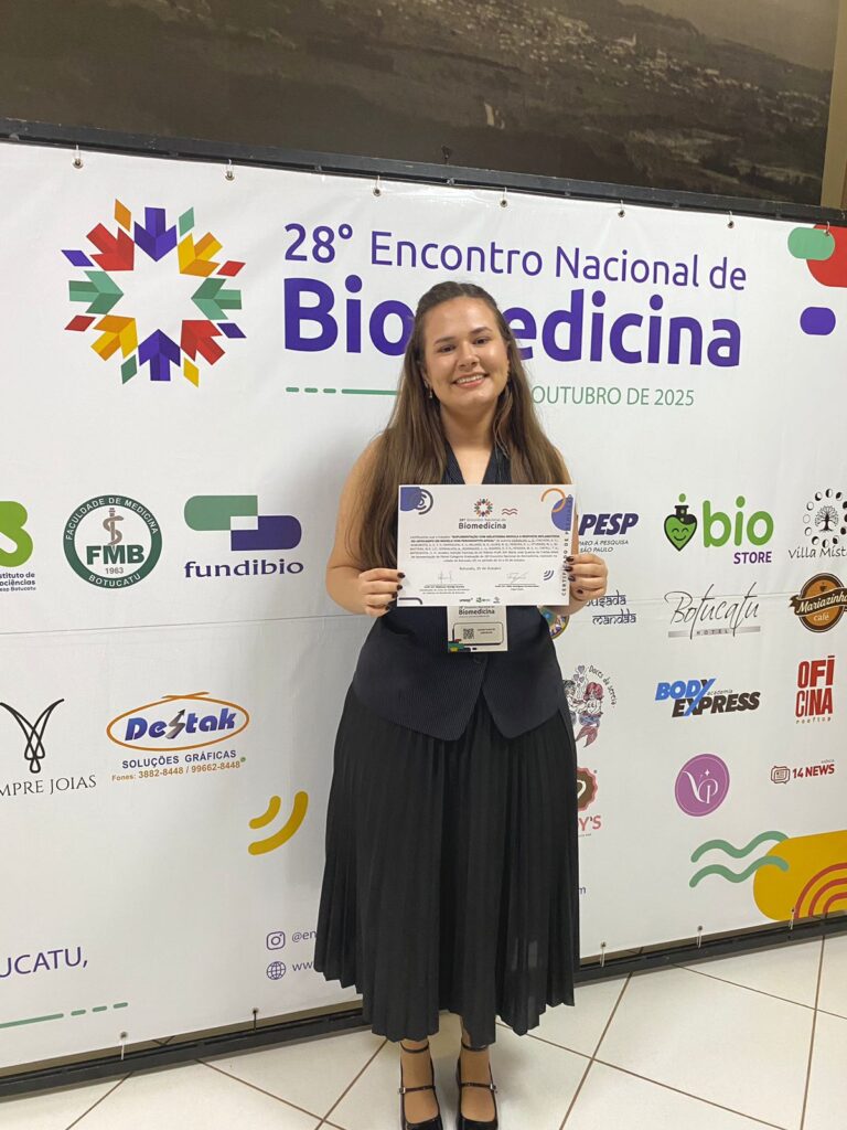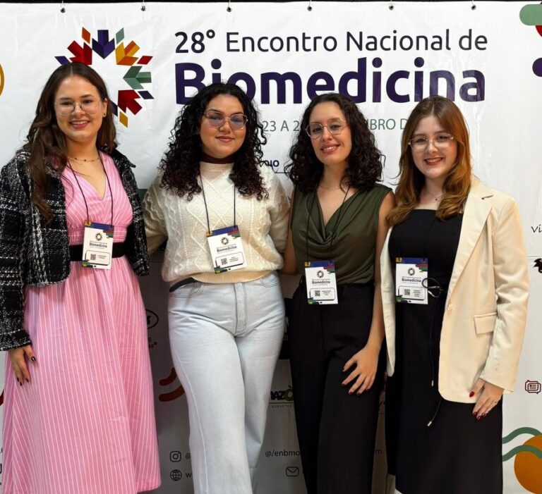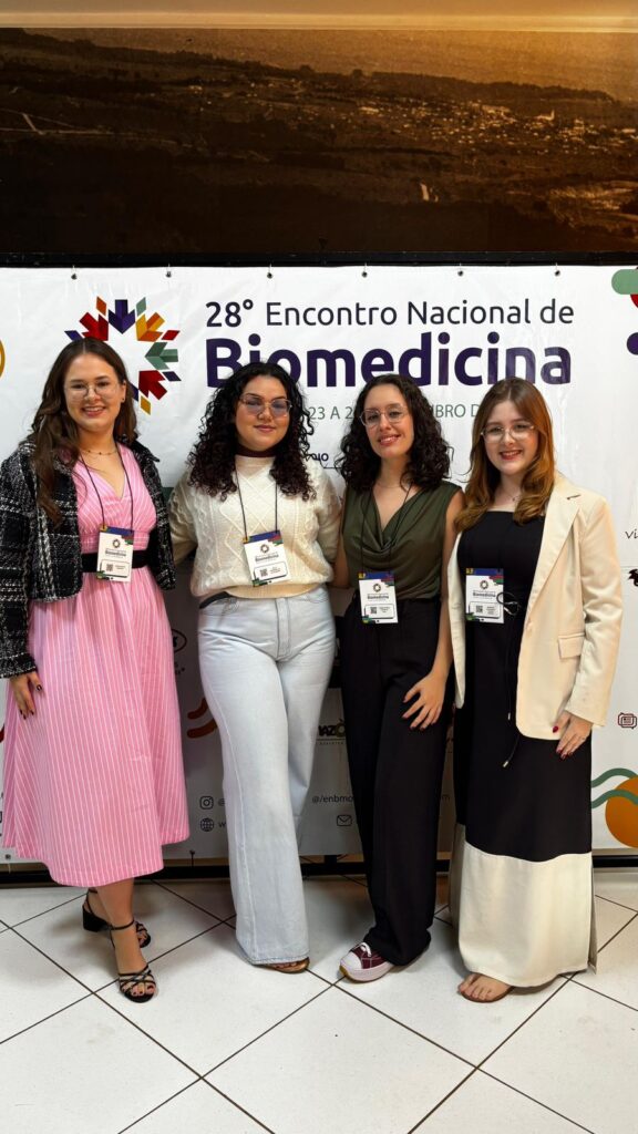 Representando o Curso de Biomedicina do UniSALESIANO, as acadêmicas Kelly Fernanda da Silva Soares (6ºB), Louise Elias de Carvalho (6ºA), Mariana Campanha Hilário Pereira (4ºB) e Yasmim Vitória Altran da Silva (6ºB) participaram ativamente do evento, envolvendo-se em palestras, mesas-redondas e minicursos — além de apresentarem trabalhos científicos que conquistaram destaque entre os avaliadores.