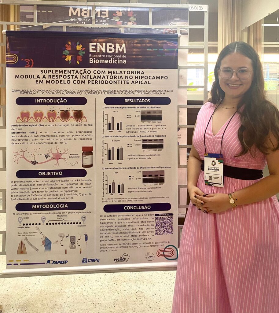“Sem dúvida, o ponto mais marcante foi o momento em que recebi a menção honrosa pela apresentação do meu trabalho de Iniciação Científica. Essa conquista representou não apenas o reconhecimento de um esforço, mas também um incentivo para seguir trilhando o caminho da pesquisa científica com ainda mais dedicação e entusiasmo”, completou a acadêmica do 6º termo.