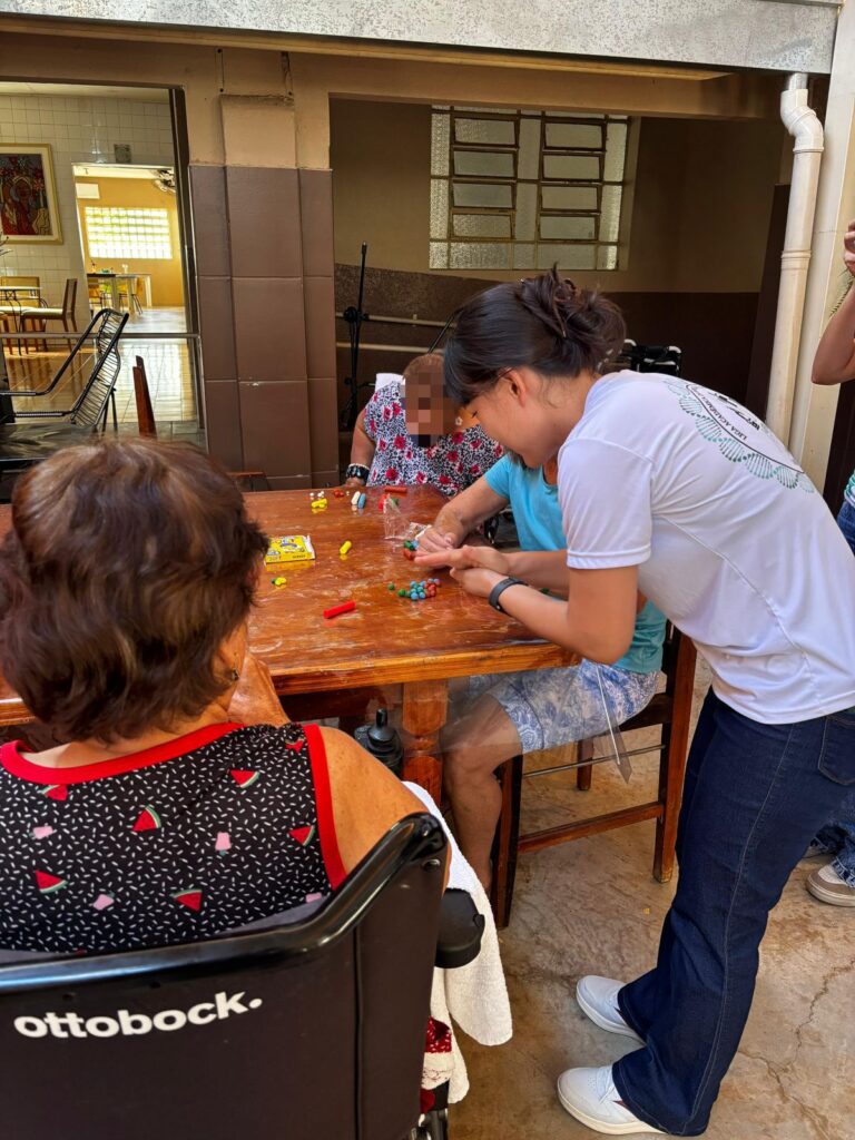 Já no dia 28 de março, no período da tarde, a equipe esteve no Lar São João, onde realizou a entrega do restante das doações e promoveu mais um momento de convivência com os idosos. Assim como na primeira visita, os acadêmicos puderam conhecer as instalações da instituição e as atividades oferecidas.