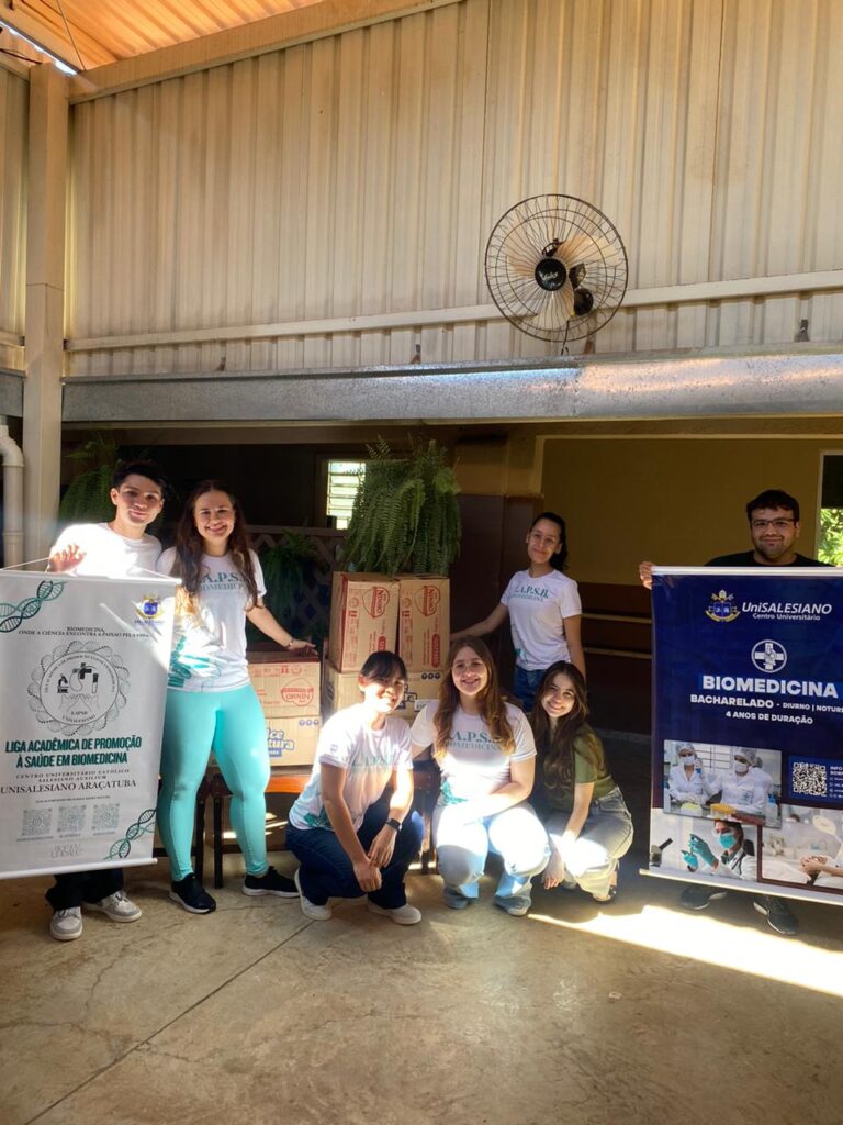 Os integrantes da Liga Acadêmica de Promoção à Saúde em Biomedicina (LAPSB) do UniSALESIANO promoveram uma ação solidária no município de Araçatuba, com a arrecadação e doação de aproximadamente 160 quilos de alimentos destinados a duas instituições de acolhimento de idosos.
