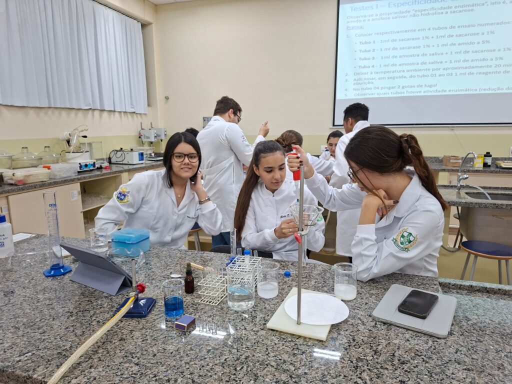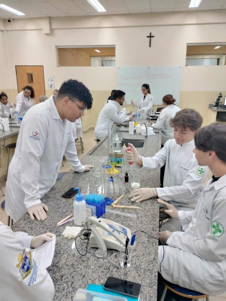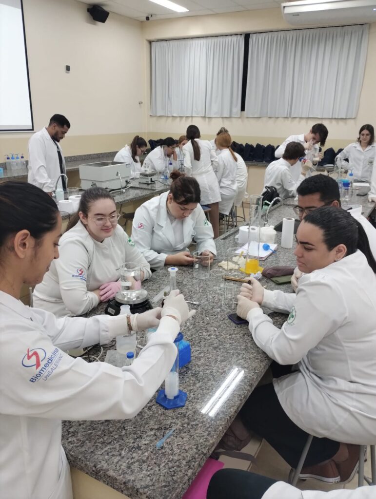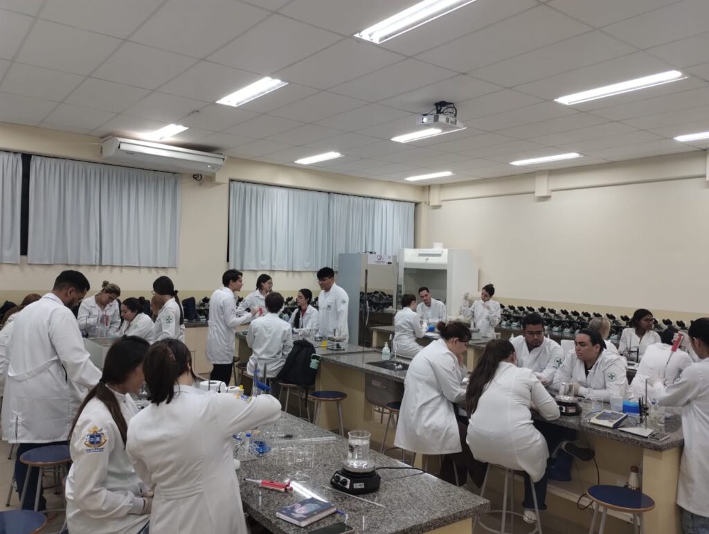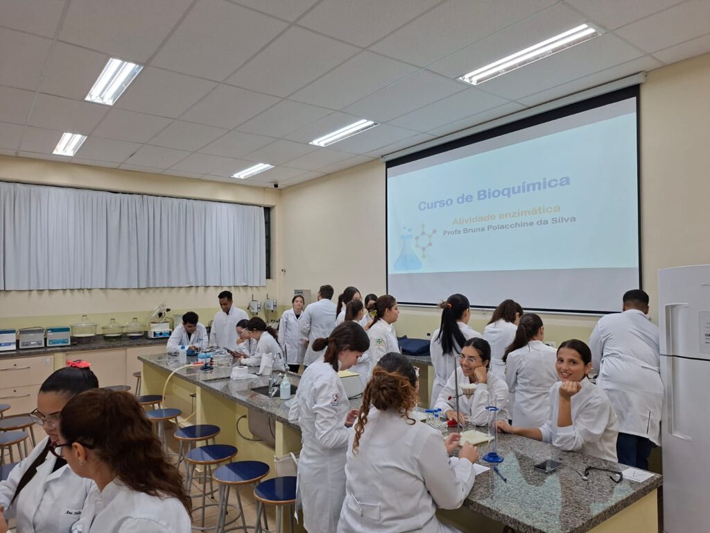 Durante dois dias intensos de atividades práticas, os acadêmicos puderam aprofundar seus conhecimentos sobre o funcionamento e a atividade das enzimas, relacionando teoria e prática em experimentos conduzidos em laboratório.