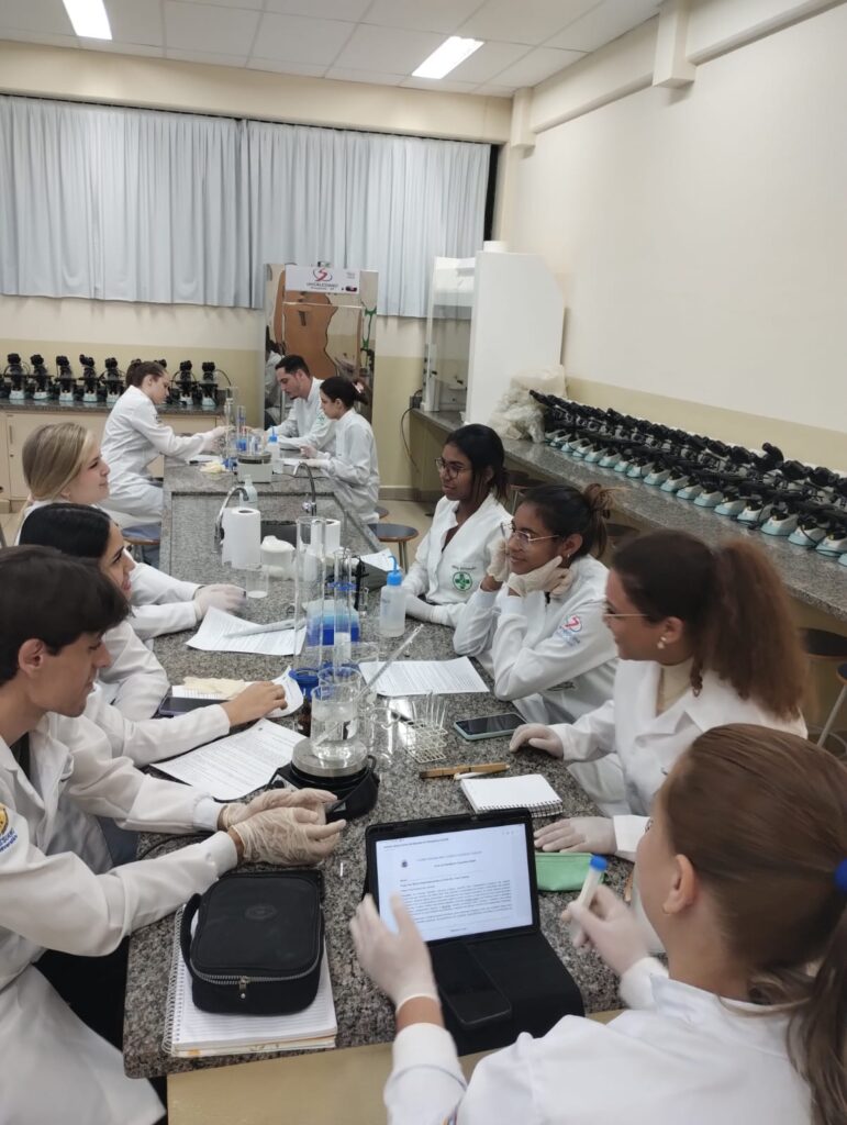 A atividade reuniu cerca de 60 alunos dos 2º, 4º, 6º e 8º termos, sob a orientação das professoras Bruna Polacchine da Silva, responsável pela disciplina de Bioquímica Clínica, e Thais Veronica Saori Tsosura Chiba, professora assistente.