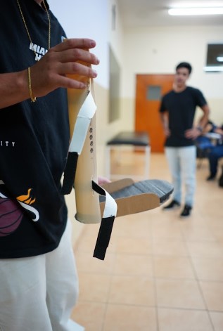 Os futuros fisioterapeutas foram desafiados a elaborar dispositivos utilizando materiais acessíveis, como PVC, EVA, porcas, parafusos e velcros, demonstrando que recursos de baixo custo também podem resultar em produtos funcionais. Alguns grupos, por outro lado, apostaram em materiais de maior performance, como a fibra de carbono, que ampliam as possibilidades de construção.