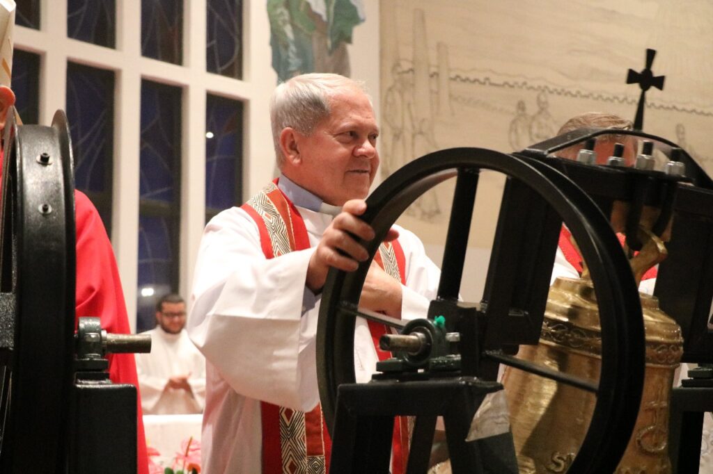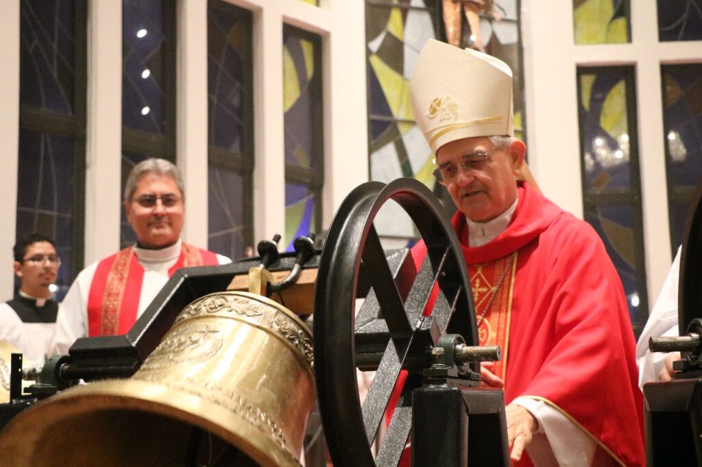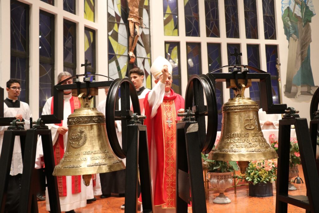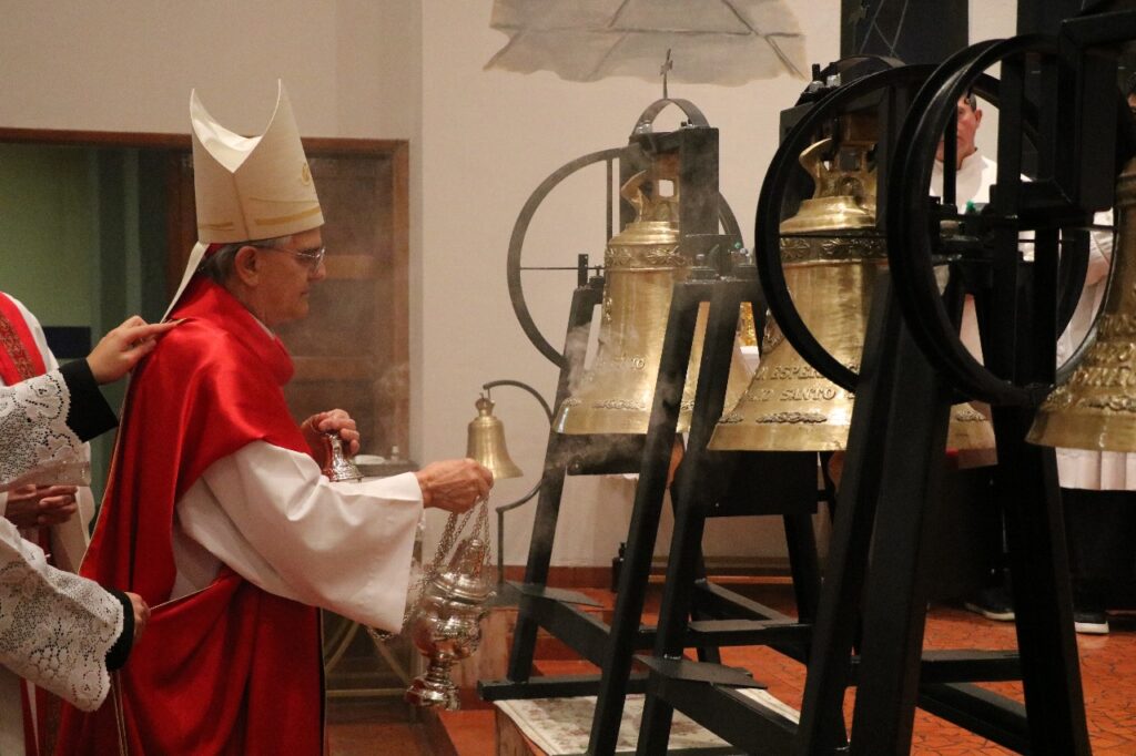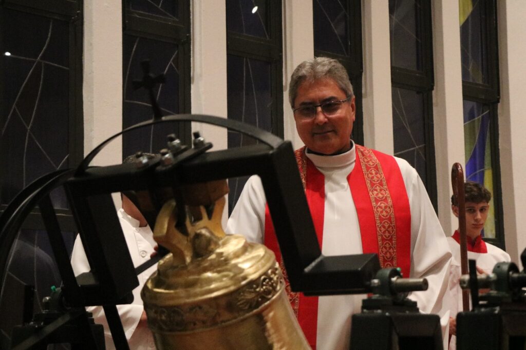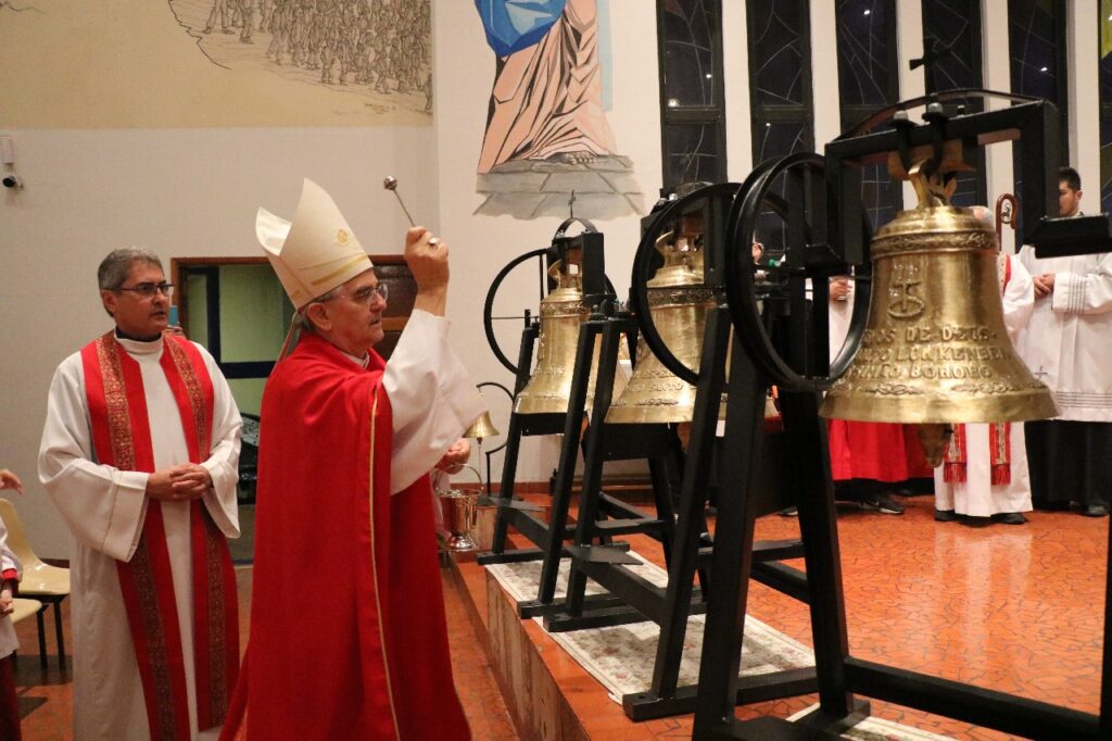 Ao final da celebração, Dom Sérgio abençoou quatro novos sinos de bronze que irão compor o Campanário comemorativo pelos 50 anos da construção da capela São Domingos Sávio.