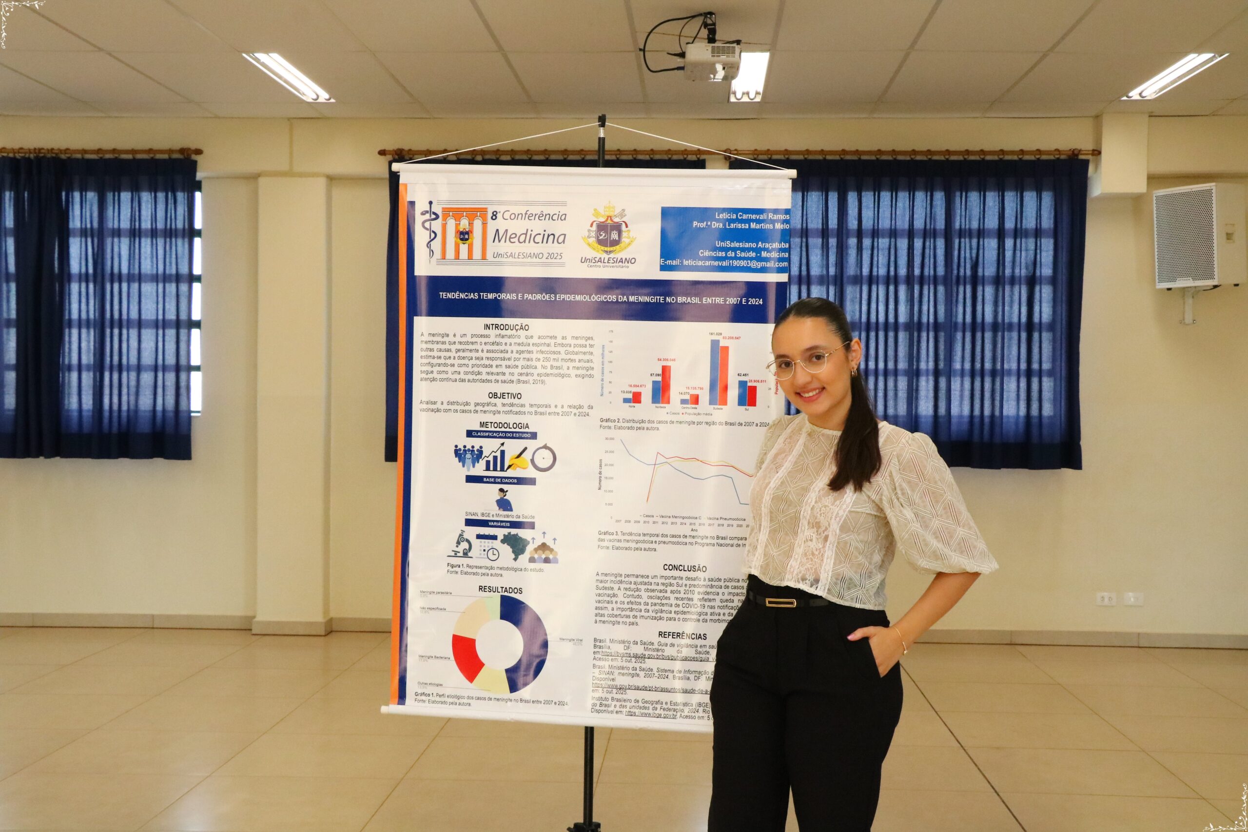 A 8ª Conferência de Medicina do UniSALESIANO, realizada neste mês, contou com apresentações simultâneas em dois auditórios do Bloco D. O evento contou com 19 pôsteres e 4 apresentações orais de trabalhos científicos desenvolvidos pelos acadêmicos do Curso de Medicina.
