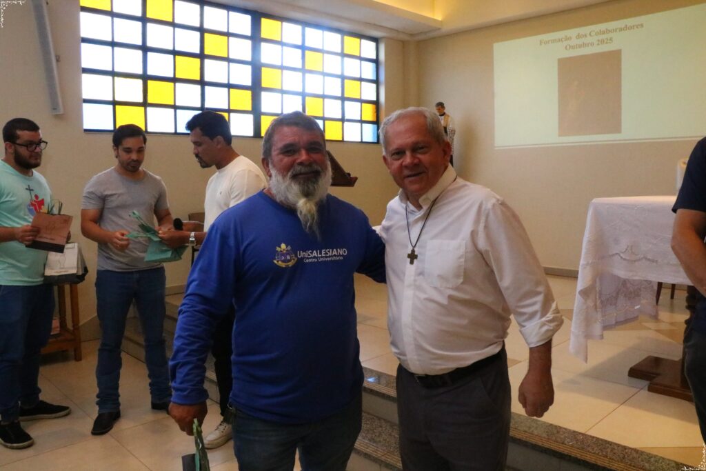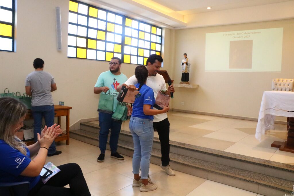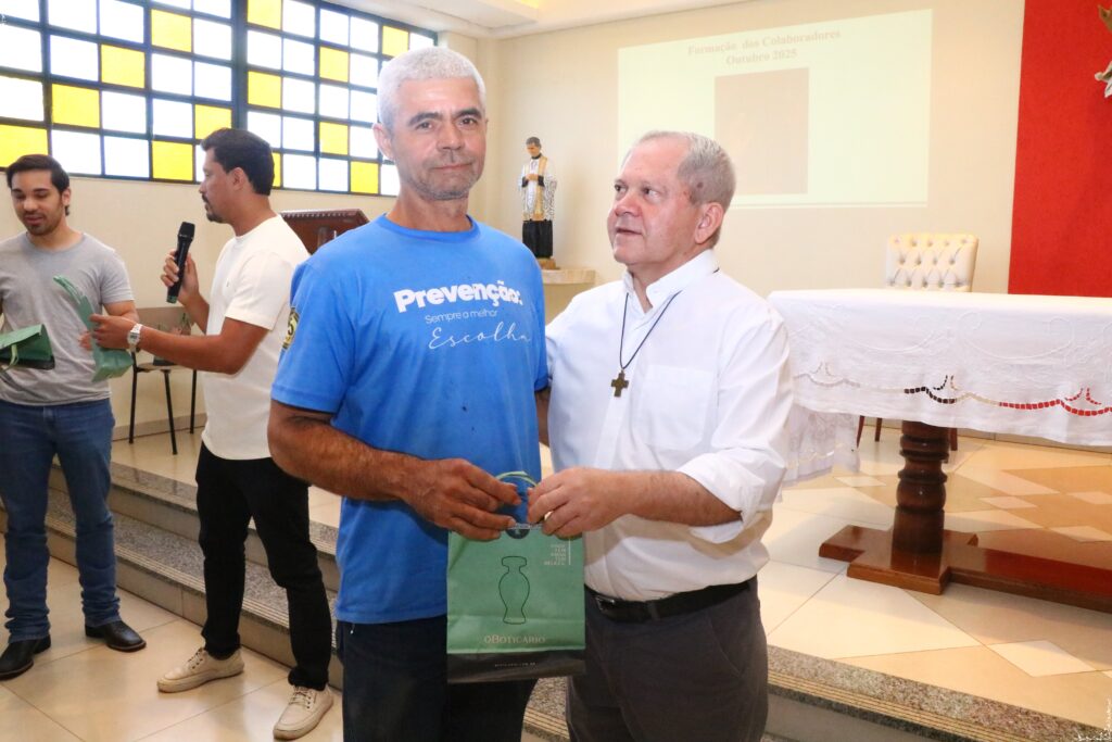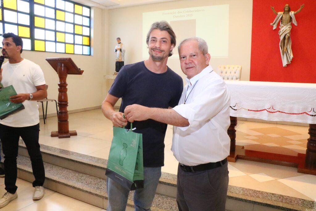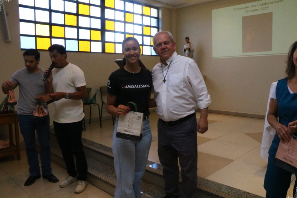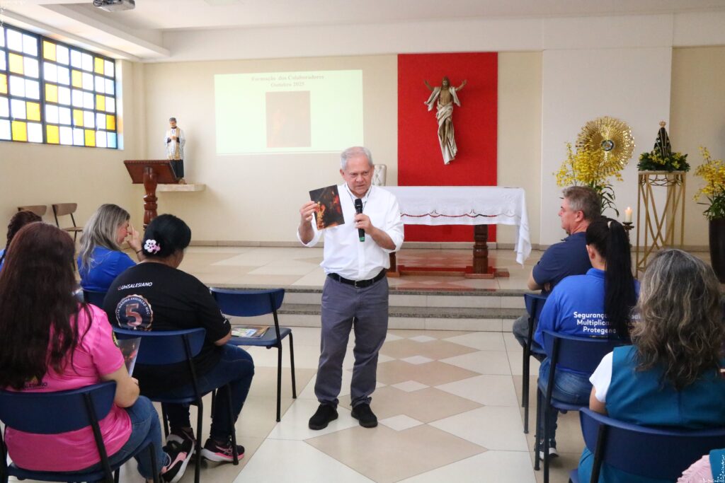 Pe. Vendrame ainda recordou momentos marcantes do ano, como a 7ª Peregrinação Universitária a Aparecida, e anunciou a próxima edição, programada para outubro de 2026. Também apresentou aos colaboradores um livreto biográfico sobre Artêmides Zatti, o mais novo santo da Família Salesiana, exemplo de fé, serviço e dedicação aos doentes e necessitados.