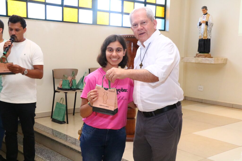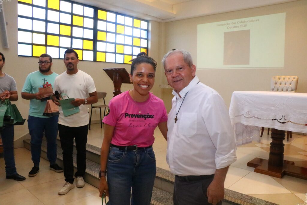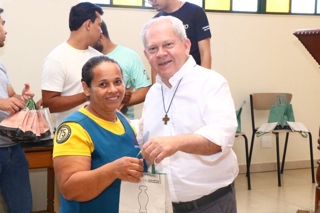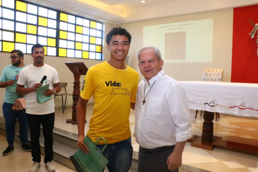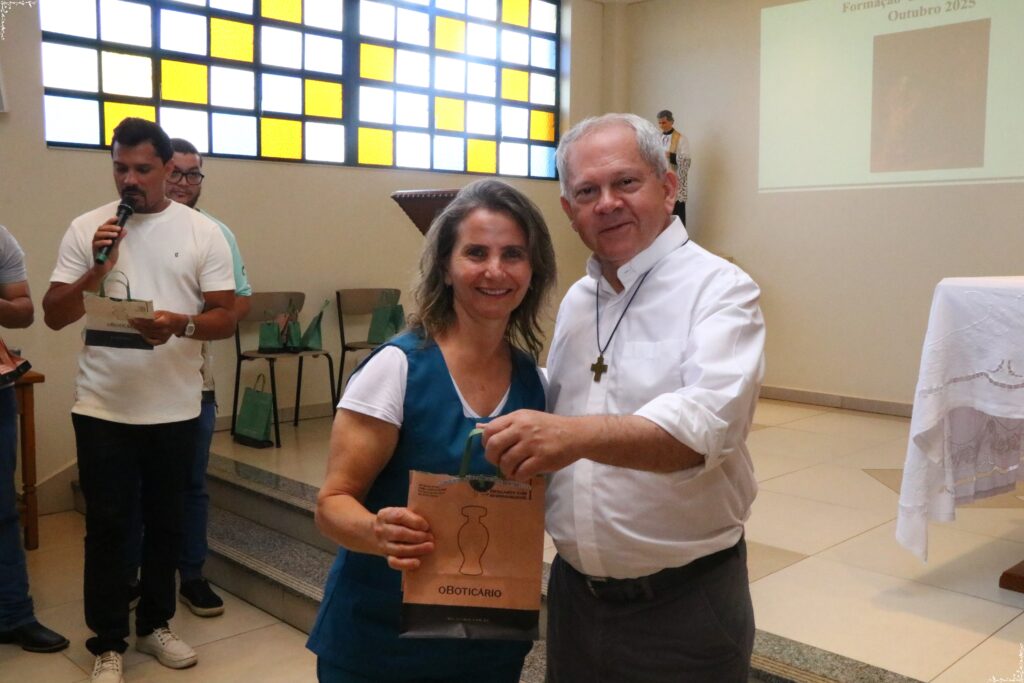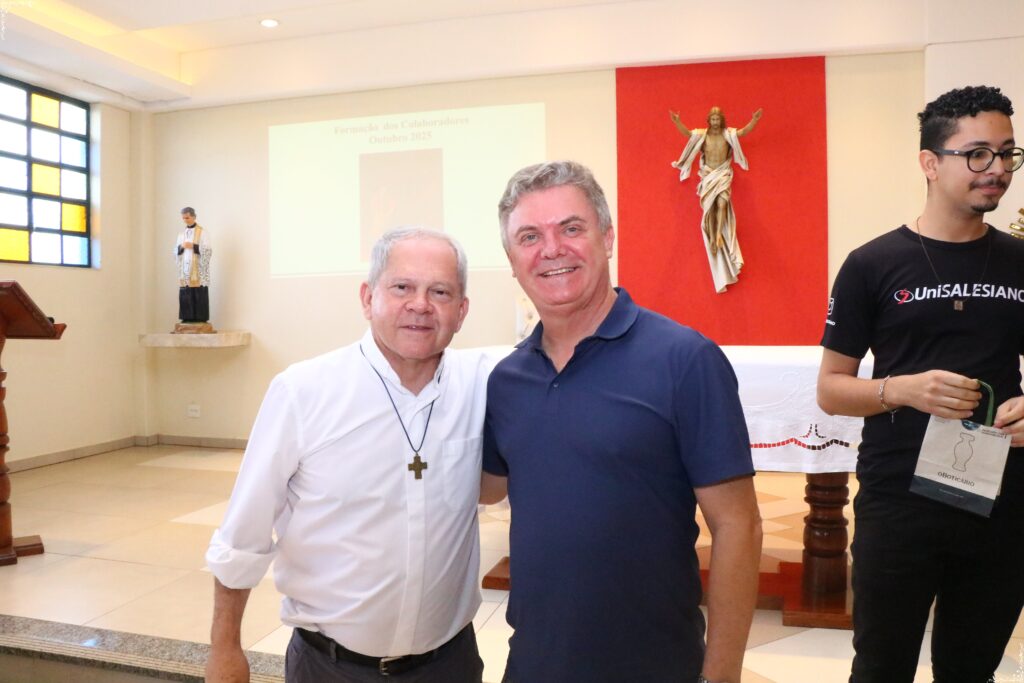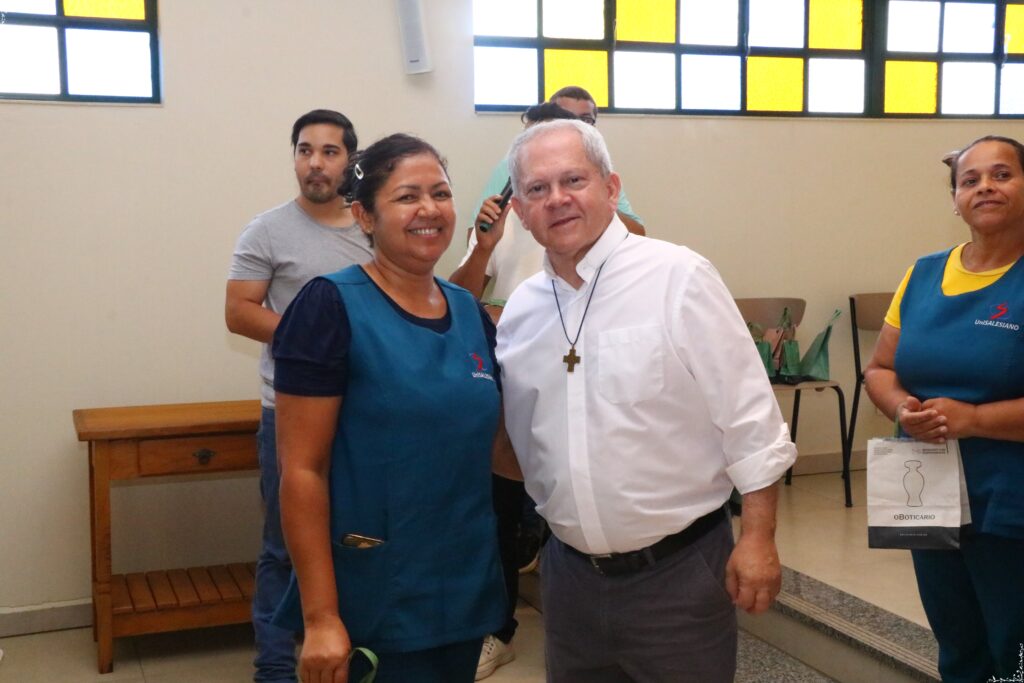 Pe. Vendrame ainda recordou momentos marcantes do ano, como a 7ª Peregrinação Universitária a Aparecida, e anunciou a próxima edição, programada para outubro de 2026. Também apresentou aos colaboradores um livreto biográfico sobre Artêmides Zatti, o mais novo santo da Família Salesiana, exemplo de fé, serviço e dedicação aos doentes e necessitados.