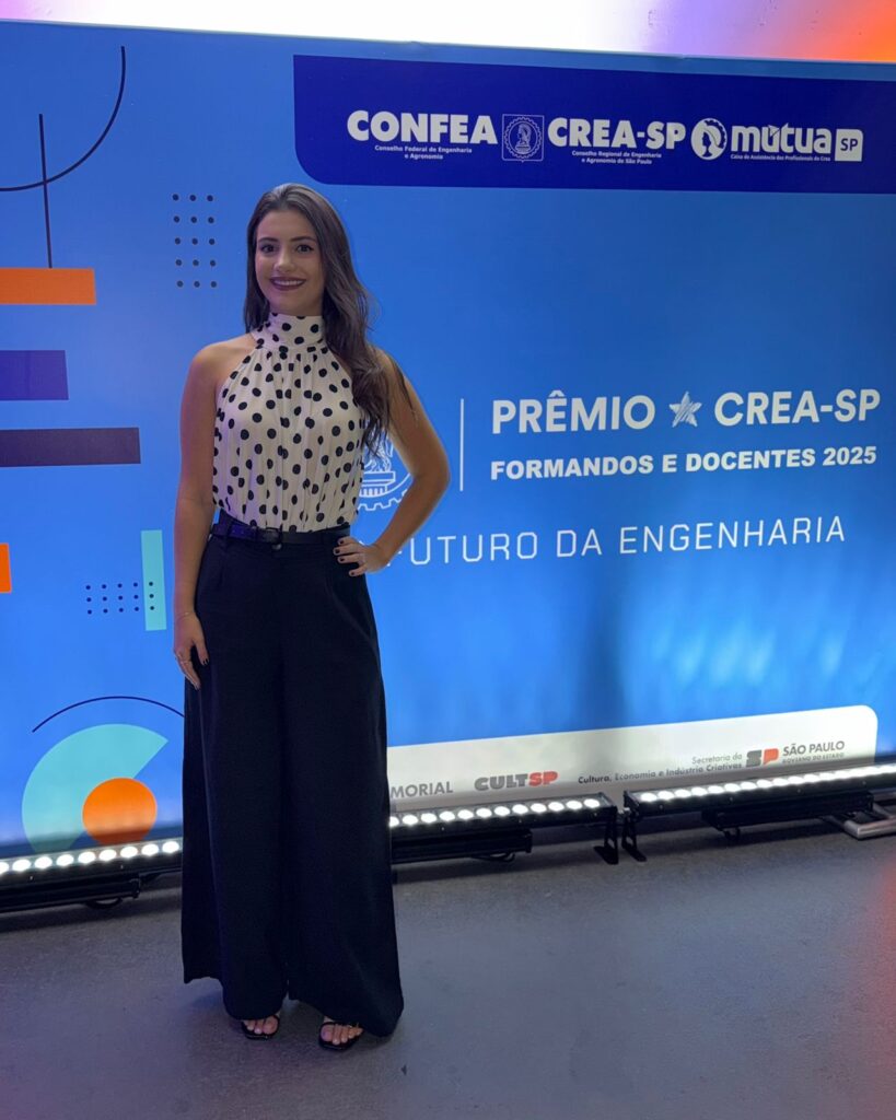 Para Isabella, o reconhecimento marca um momento especial em sua trajetória. “Receber o Prêmio CREA-SP de Formação Profissional é uma honra imensa e um reconhecimento significativo de todo o esforço e dedicação empregados durante minha jornada acadêmica”, explicou, ao comentar que o prêmio não apenas valida o trabalho árduo, mas também serve como um poderoso incentivo para continuar buscando a excelência na sua carreira profissional. “Ele simboliza a concretização de um sonho e a responsabilidade de representar bem a minha formação e a instituição que me indicou”.