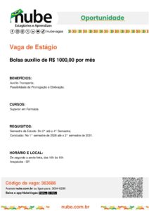 • Bolsa estágio: R$ 650,00