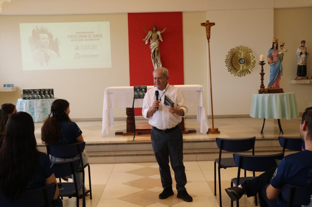 Um dos momentos mais significativos da formação foi a apresentação do livro “O Realizador de Sonhos – Dom Luís Lasagna – Uma Biografia Nova”, escrito pelo Pe. Gildásio Mendes dos Santos, que mostrou ao público uma obra fruto de intensa pesquisa, que resgata a trajetória de um dos grandes pioneiros da missão salesiana na América do Sul.