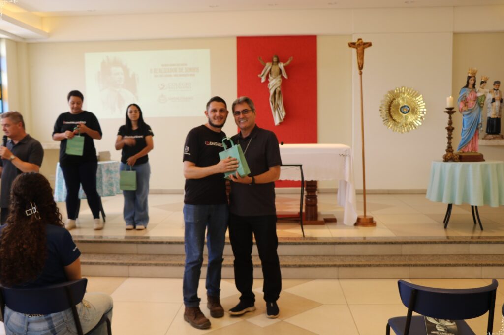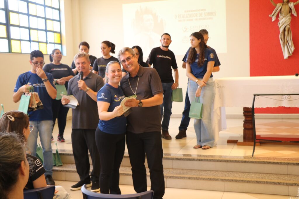 Pe. Paulo também relembrou momentos históricos da trajetória institucional, representados no painel que retrata o passado, o presente e os projetos futuros do UniSALESIANO, reforçando o compromisso com a missão educativa e evangelizadora salesiana. Em tom pessoal, partilhou ainda a celebração de seus 30 anos de ordenação sacerdotal, agradecendo a Deus e às pessoas que caminharam com ele ao longo dessa missão.