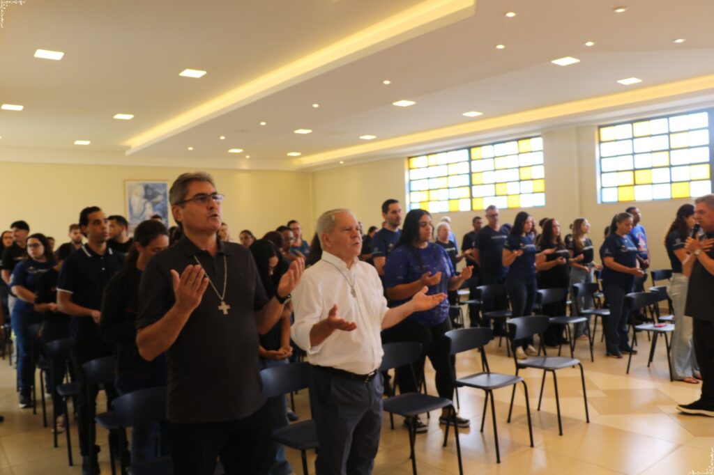 Durante sua reflexão, o reitor ressaltou conquistas importantes da Instituição, como os resultados positivos nas avaliações do Ministério da Educação. Ele destacou o reconhecimento do Curso de Medicina e o excelente desempenho de outros cursos, como Psicologia, reforçando que essas conquistas são fruto do trabalho conjunto de coordenadores, docentes e, de forma essencial, das equipes administrativas. “Tudo aqui educa: desde a organização dos espaços até o modo como nos relacionamos. Todos nós somos educadores”, enfatizou.