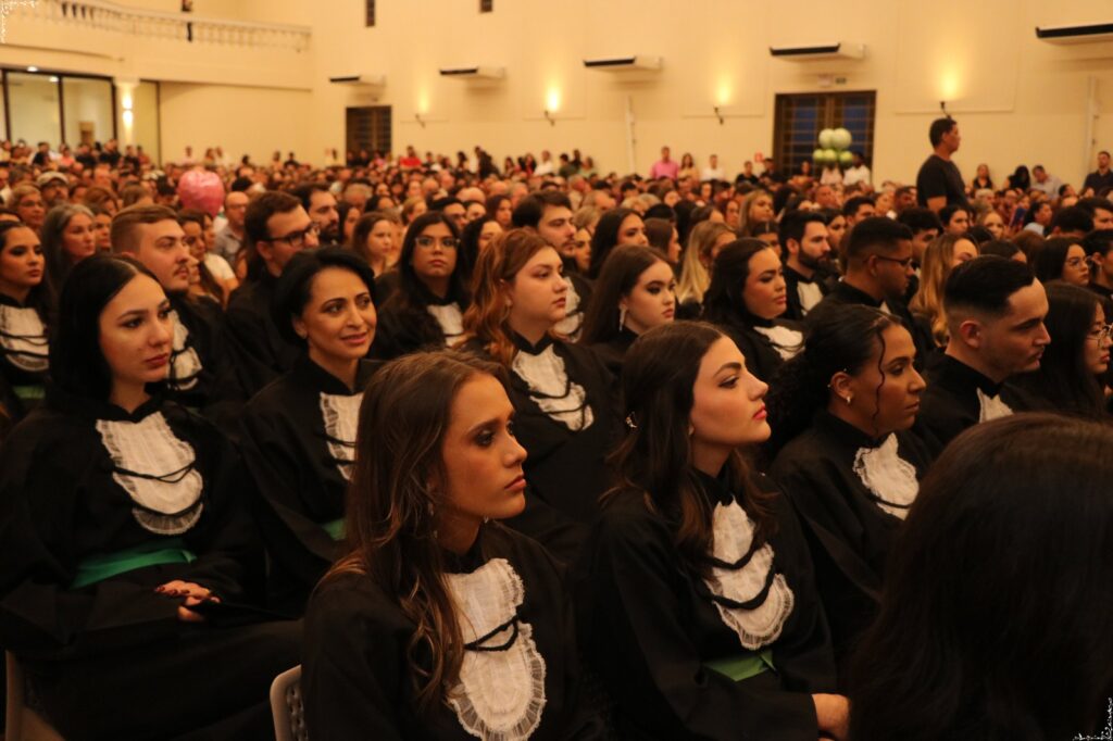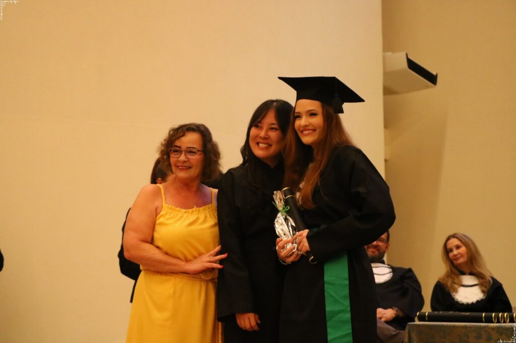 Um dos momentos mais emocionantes da noite foi a homenagem aos professores e aos pais, reconhecendo o carinho, a paciência e o apoio fundamentais para a formação dos novos profissionais. A homenagem aos pais foi conduzida pela psicóloga Karoliny de Lima Nardin, em nome dos colegas, em um gesto de gratidão e reconhecimento.