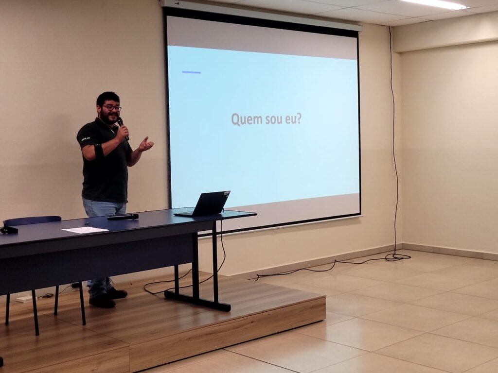O encontro contou com uma palestra ministrada por Marcos Pires Jr., Analista de Qualidade de Produção Sênior na empresa Solinftec, que possui formação em Gestão Empresarial, MBA em Engenharia da Qualidade e pós-graduação em Inteligência Artificial.