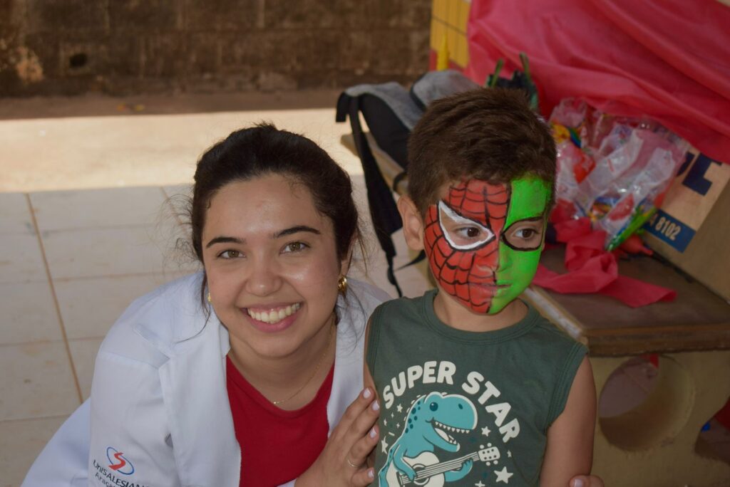 Em comemoração ao Dia das Crianças, o evento contou com pintura facial, balões de animais, distribuição de doces e brinquedos, além de um mutirão de consultas pediátricas. Ao longo do dia, os pacientes atendidos receberam café da manhã e café da tarde, enquanto os 80 voluntários dos projetos MedNutri e Rede Cuidar participaram de um almoço especial na escola do bairro.