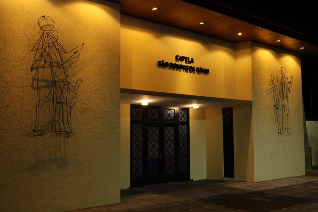 “Como se trata de um projeto da década de 1970, com linhas dinâmicas e ângulos marcantes, procuramos adotar a mesma linha projetual em um design limpo que dialogasse com a capela”, explicou.