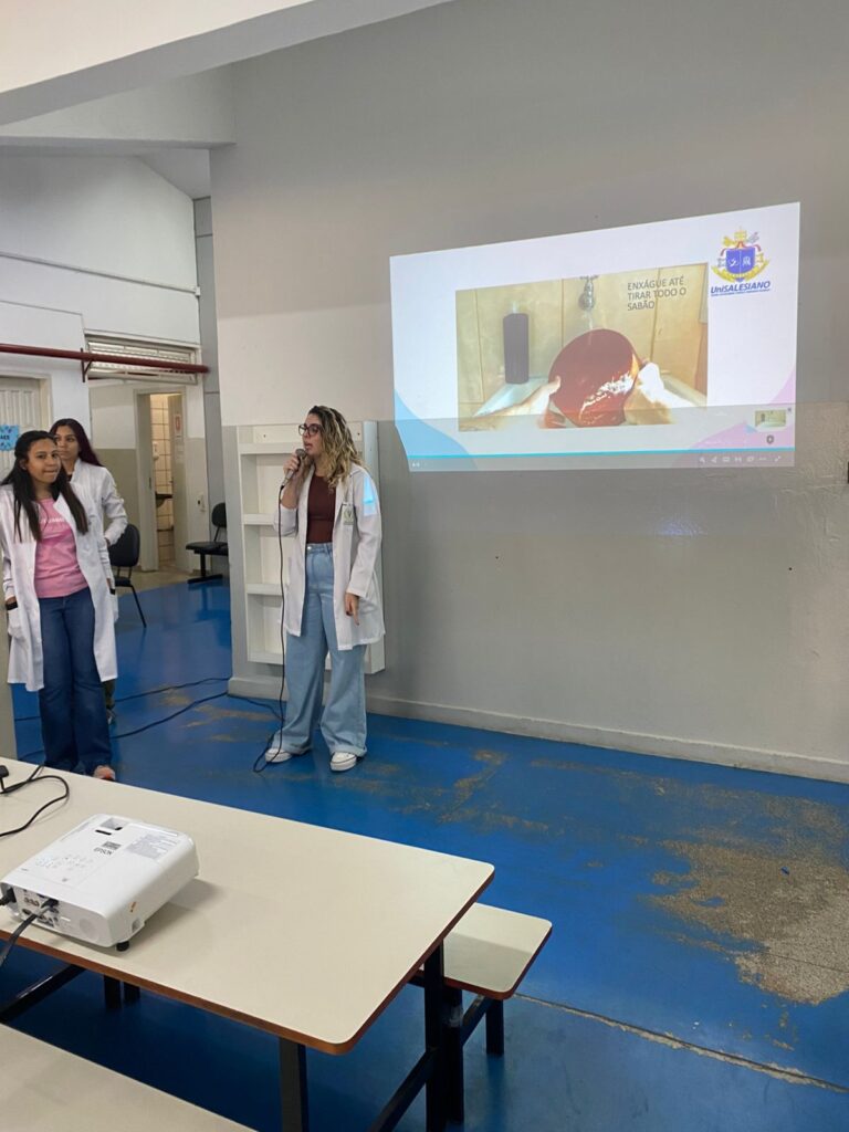 Acadêmicos e docentes do projeto “Anjos e Patas”, do Curso de Medicina Veterinária do UniSALESIANO, realizaram visitas à EMEB Prof. Floriano Camargo, em Araçatuba, para promover atividades educativas sobre o bem-estar dos animais.