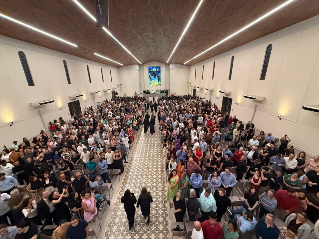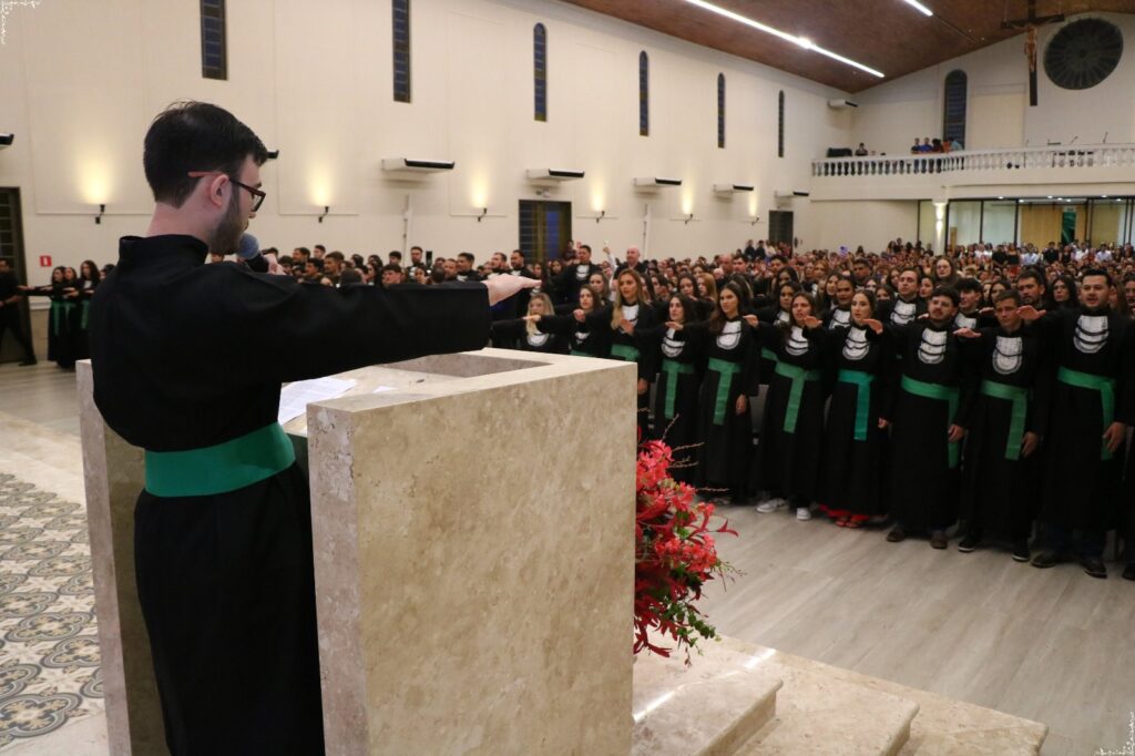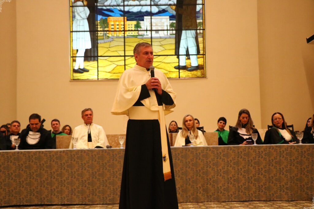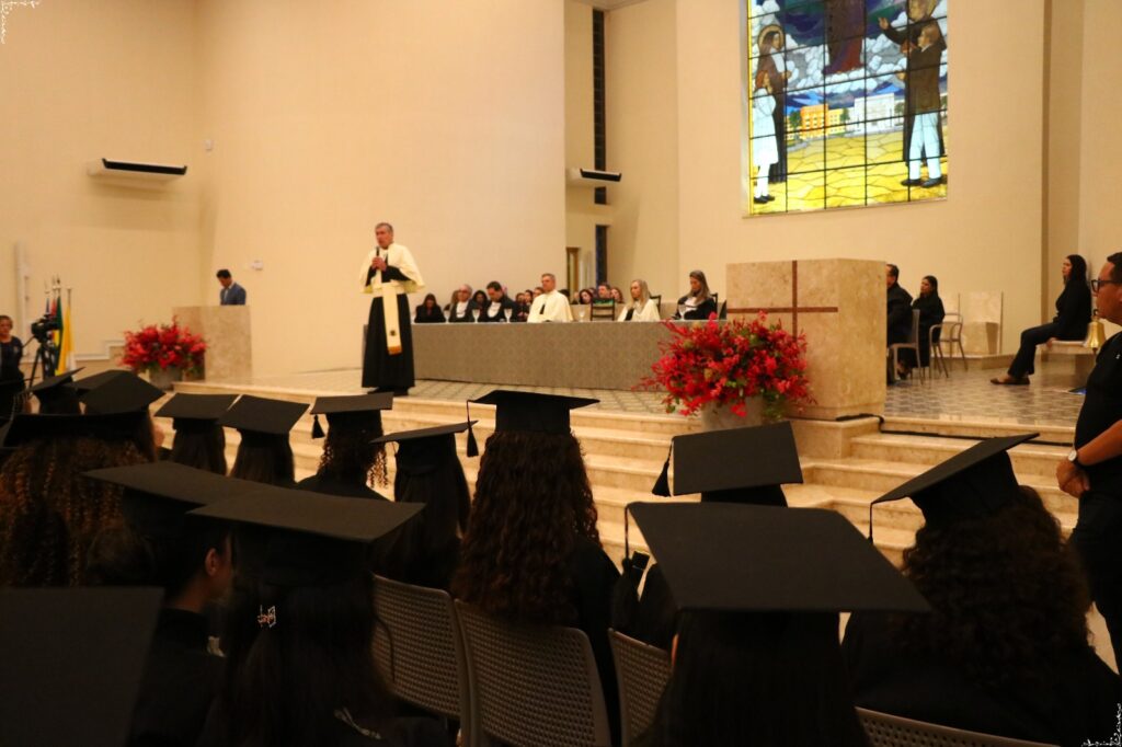 Pe. Paulo Jácomo conduziu uma mensagem de ação de graças, destacando a presença constante de Deus ao longo da caminhada dos formandos, e agradecendo às famílias, professores e amigos que contribuíram para essa conquista.