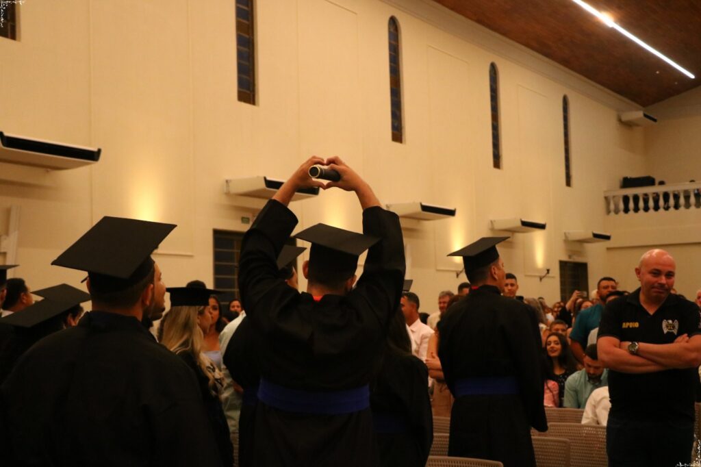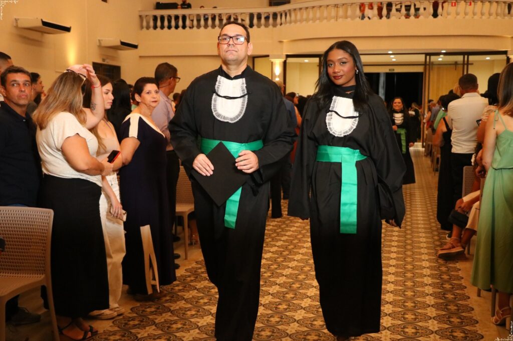 Após a execução do Hino Nacional Brasileiro, foi realizado o juramento solene, conduzido pelo formando Leandro Tisseu Forcino, momento em que os concluintes assumiram publicamente o compromisso com a ética, a responsabilidade profissional, a integridade, o aprendizado contínuo e a contribuição para uma sociedade mais justa, humana e sustentável.