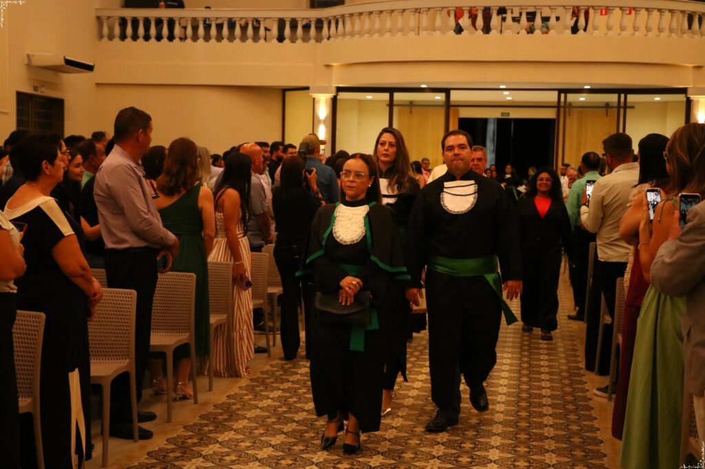 Um dos momentos mais emocionantes da noite foi a homenagem aos pais, conduzida pela médica veterinária Caryne do Carmo Martos Ramos, em nome dos formandos, reconhecendo o apoio incondicional das famílias, mesmo à distância, durante toda a trajetória universitária.