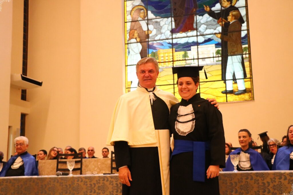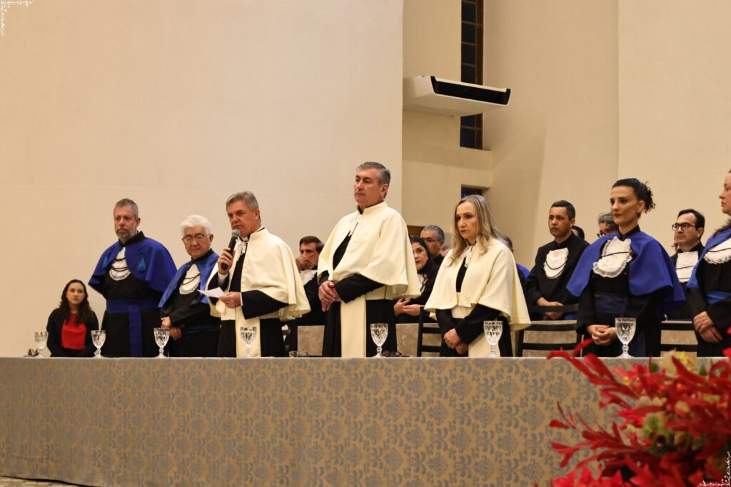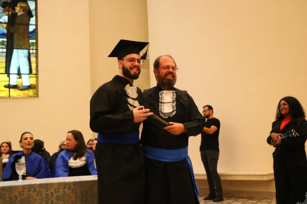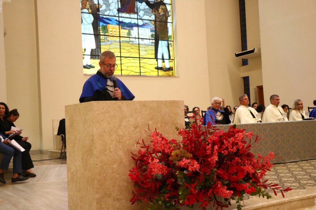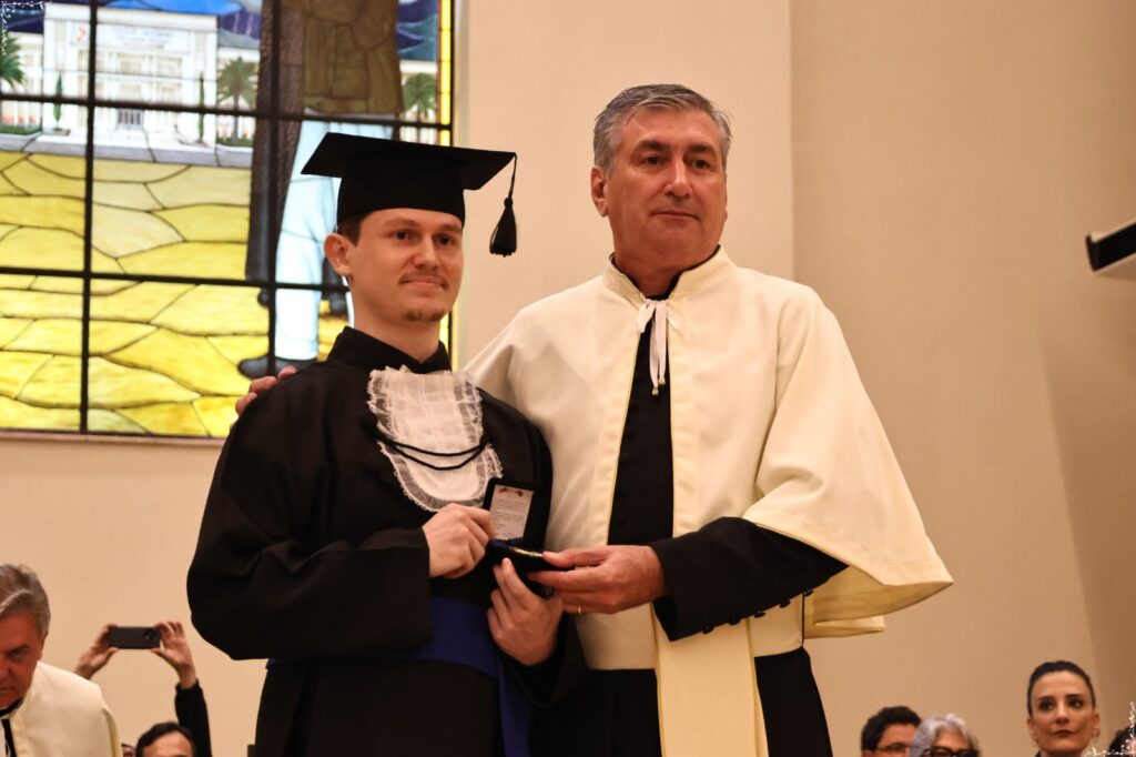 O Pró-Reitor de Pastoral dirigiu-se aos presentes com uma mensagem marcada pela gratidão e pela espiritualidade. Em sua reflexão, ressaltou que a solenidade simbolizava muito mais do que um rito acadêmico: representava a vitória de uma jornada construída com esforço, perseverança e fé. Destacou ainda a presença constante de Deus ao longo da caminhada e a importância de reconhecer o apoio das famílias, dos amigos e, especialmente, dos professores, definidos como instrumentos do amor e da providência divina na vida dos formandos.