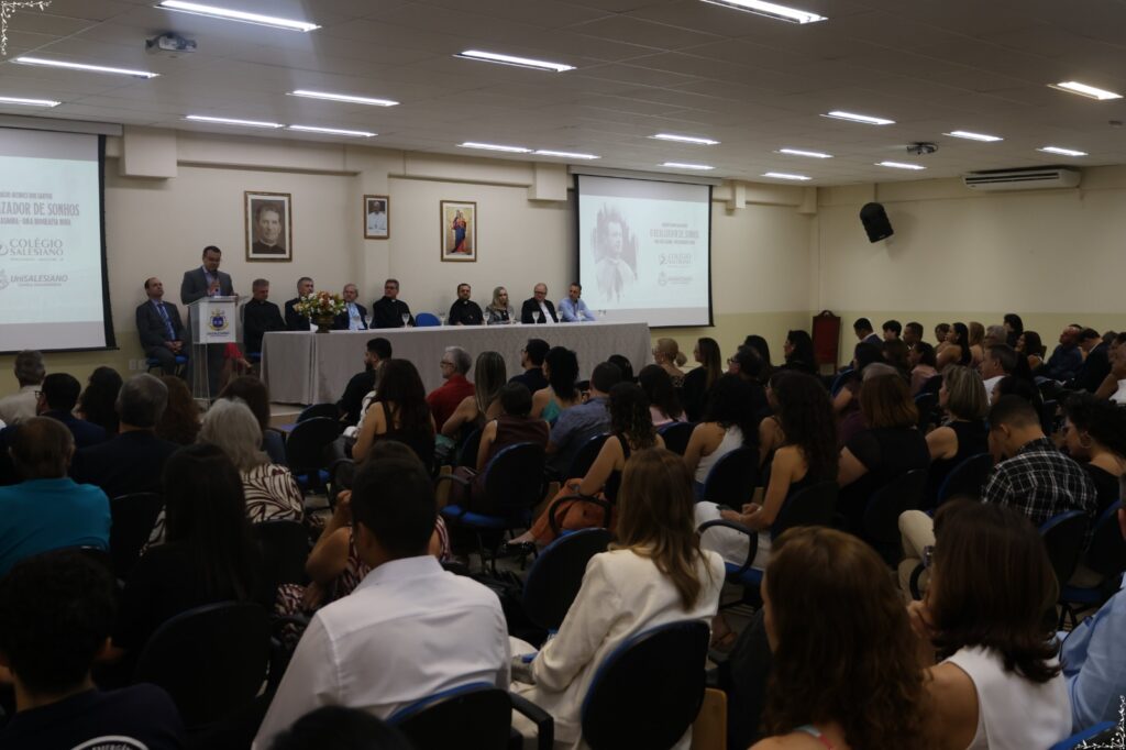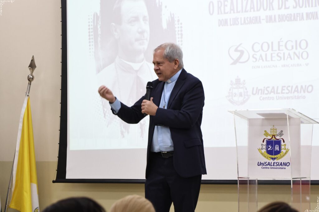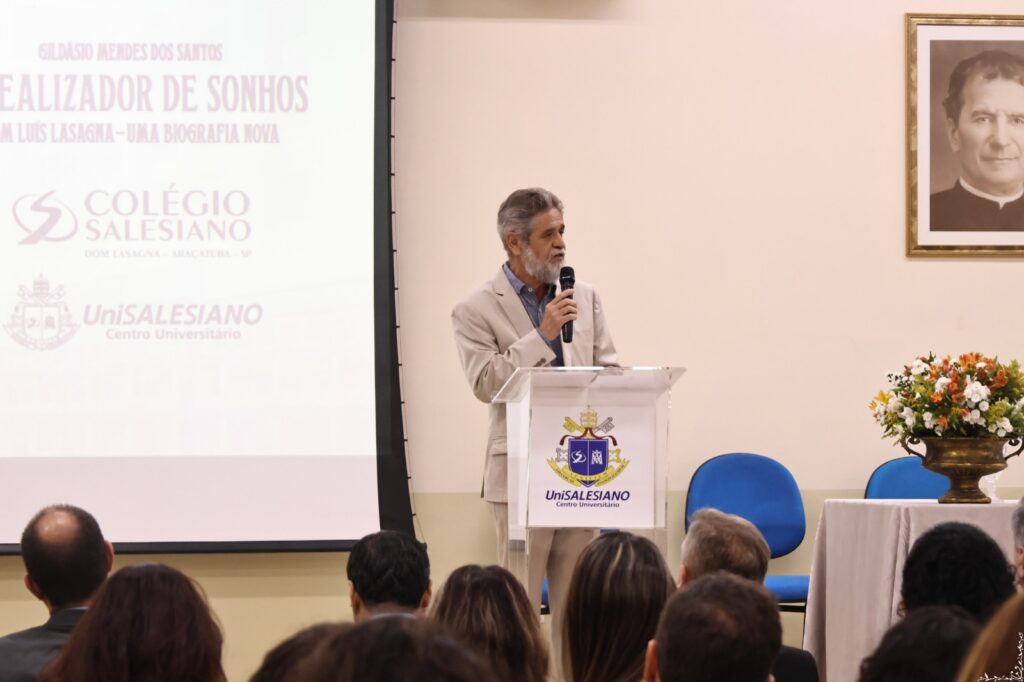 O UniSALESIANO Araçatuba realizou, na noite de 27 de novembro, a solenidade de lançamento do livro “O Realizador de Sonhos – Dom Luís Lasagna – Uma Biografia Nova”, escrito pelo Pe. Gildásio Mendes dos Santos. O evento, repleto de emoção, memória e profundo espírito salesiano, celebrou os 130 anos da morte de Dom Luís Lasagna e apresentou ao público uma obra fruto de intensa pesquisa, que resgata a trajetória de um dos grandes pioneiros da missão salesiana na América do Sul.