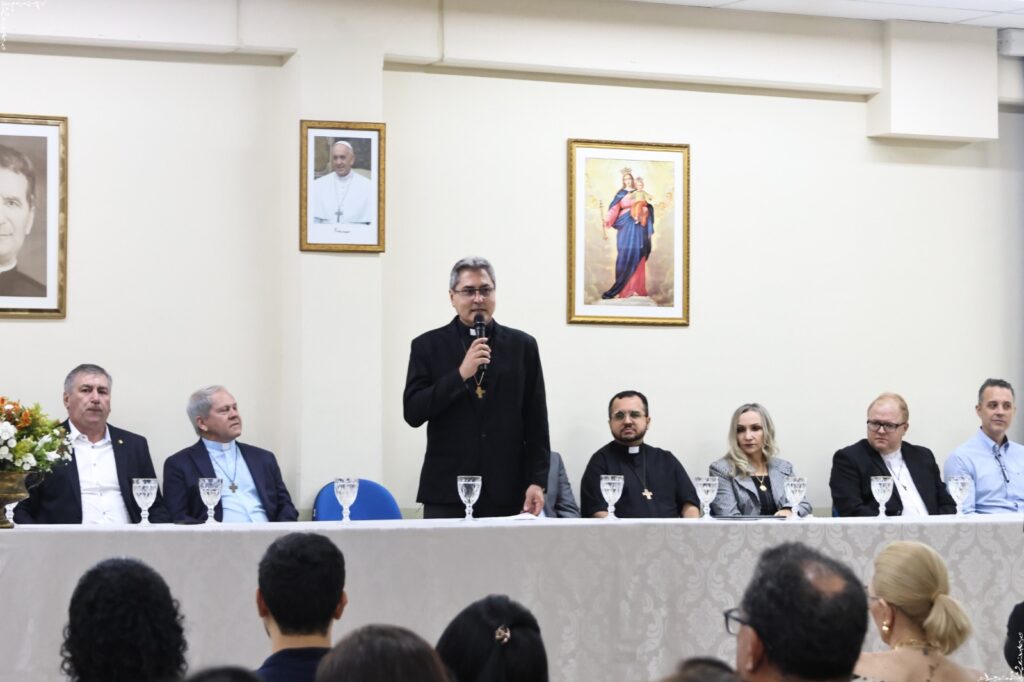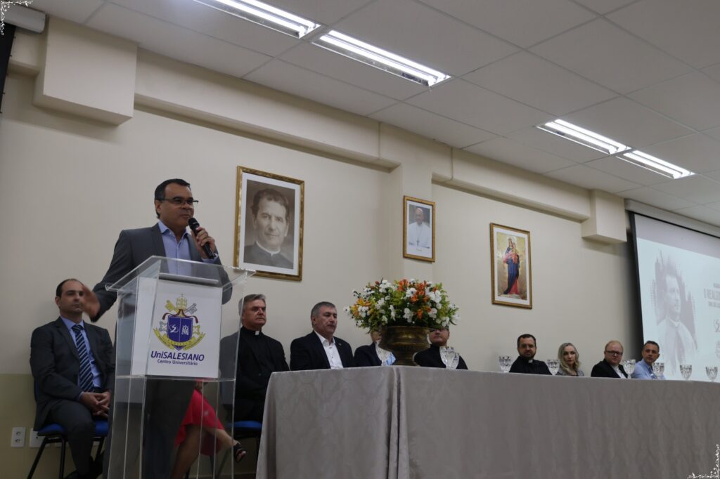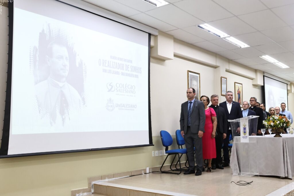 Após a execução do Hino Nacional, o reitor destacou a grandiosidade do legado de Dom Lasagna, lembrando sua convivência pessoal com Dom Bosco, a organização da segunda expedição missionária salesiana e o impacto de sua liderança no Brasil, Uruguai e Paraguai. “Dom Luís Lasagna foi um grande coração salesiano, apaixonado pelo Evangelho e pela juventude. Hoje temos o privilégio de reviver sua história”, afirmou.