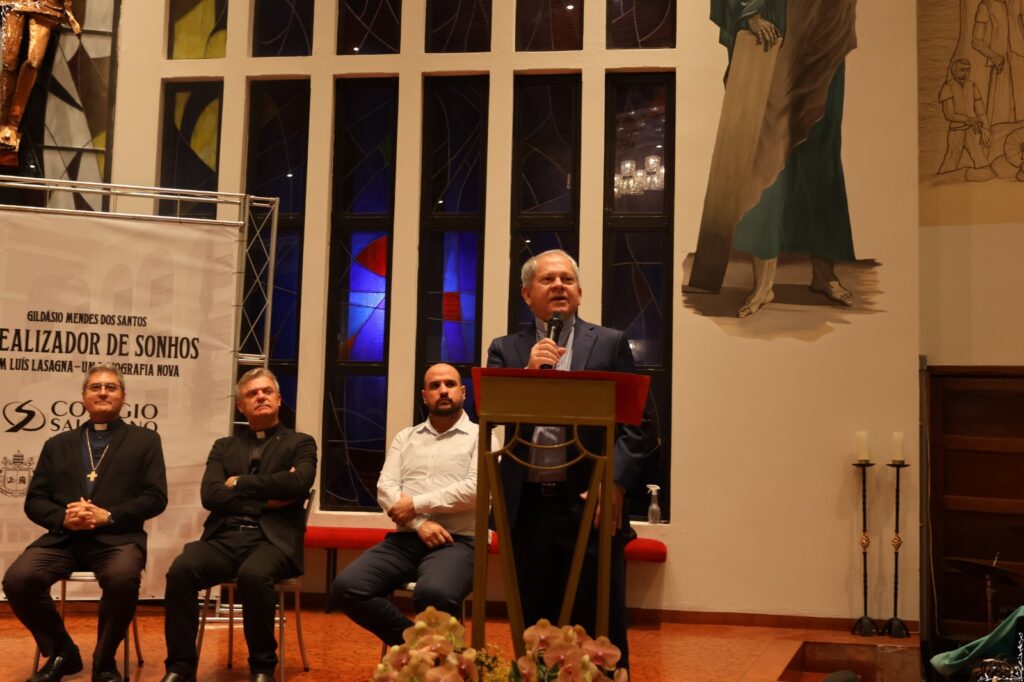 Em sua fala, o autor Pe. Gildásio Mendes emocionou o público ao apresentar aspectos marcantes da vida e da personalidade de Dom Luís Lasagna. Ele descreveu o biografado como um líder humano, que conquistava as pessoas pelo amor, pelo sorriso e pela capacidade de acolher.