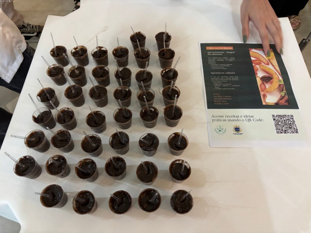 Sob a orientação da docente responsável pela orientação do projeto, Profª Ana Paula Pacchioni, os acadêmicos apresentaram banners educativos com temas essenciais para o cotidiano universitário, como a relação entre alimentação e funções cognitivas, destacando impactos na memória, concentração e rendimento acadêmico; sugestões de lanches inteligentes, práticos e nutritivos; sustentabilidade alimentar; estratégias para manter uma dieta equilibrada mesmo com recursos limitados, incluindo receitas acessíveis disponibilizadas por meio de QR Code; além da importância da hidratação e orientações para a montagem de refeições completas e variadas.