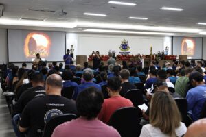 O Centro Universitário Católico Salesiano Auxilium – UniSALESIANO de Araçatuba promoveu missas na manhã e noite desta terça-feira, para comemorar a passagem da Páscoa. A celebração foi conduzida pelo Padre Luigi Favero, Diretor Geral da Instituição, que saudou os alunos, coordenadores, professores e funcionários presentes e deu as boas vindas a todos, desejando um semestre e um ano de estudos bastante produtivos.