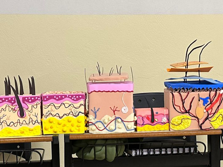 Foi apresentado, no contexto da disciplina de Biomedicina Estética, a confecção de maquetes acerca de aspectos anátomo-fisiológicos da pele pelos acadêmicos do 8º semestre. O uso de maquetes como metodologia ativa no processo de ensino/aprendizagem coloca o aluno como protagonista de seu próprio aprendizado, transformando conceitos abstratos em representações tridimensionais concretas e estimulando o raciocínio espacial e a criatividade. A prática, realizada em 29 de setembro, por si, facilita a compreensão de conteúdos complexos, promove a interação entre teoria/prática e torna o ensino mais participativo e engajador, em particular, quando a construção é realizada pelos próprios estudantes com materiais diversos.