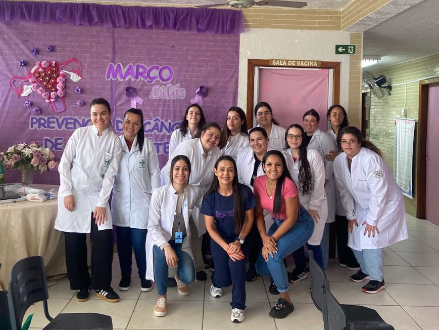 A atividade foi realizada em 14/03 e em alusão à campanha do “Março Lilás”, dedicada à prevenção do câncer de colo uterino, os acadêmicos realizaram orientações sobre a importância do Exame Papanicolau, destacando seu papel fundamental no diagnóstico precoce e na redução da mortalidade causada pela doença. O exame é essencial para identificar alterações nas células do colo uterino, permitindo tratamento adequado quando necessário.