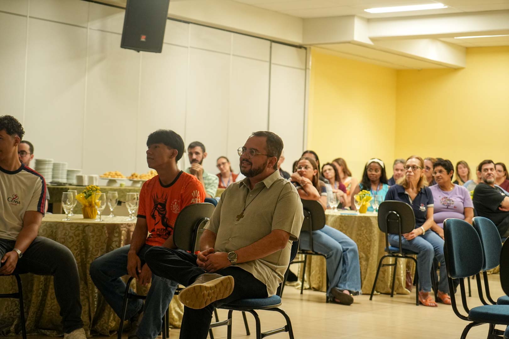 A homenagem foi conduzida pelo Coordenador da Pastoral Universitária, Pe. Denilson Bezerra e reuniu funcionários, professores e coordenadores de curso, que se uniram para celebrar a vida e a trajetória do diretor. Em um clima de alegria e gratidão, todos entoaram o tradicional “Parabéns”, marcando o início de uma sequência de homenagens preparadas com muito carinho.