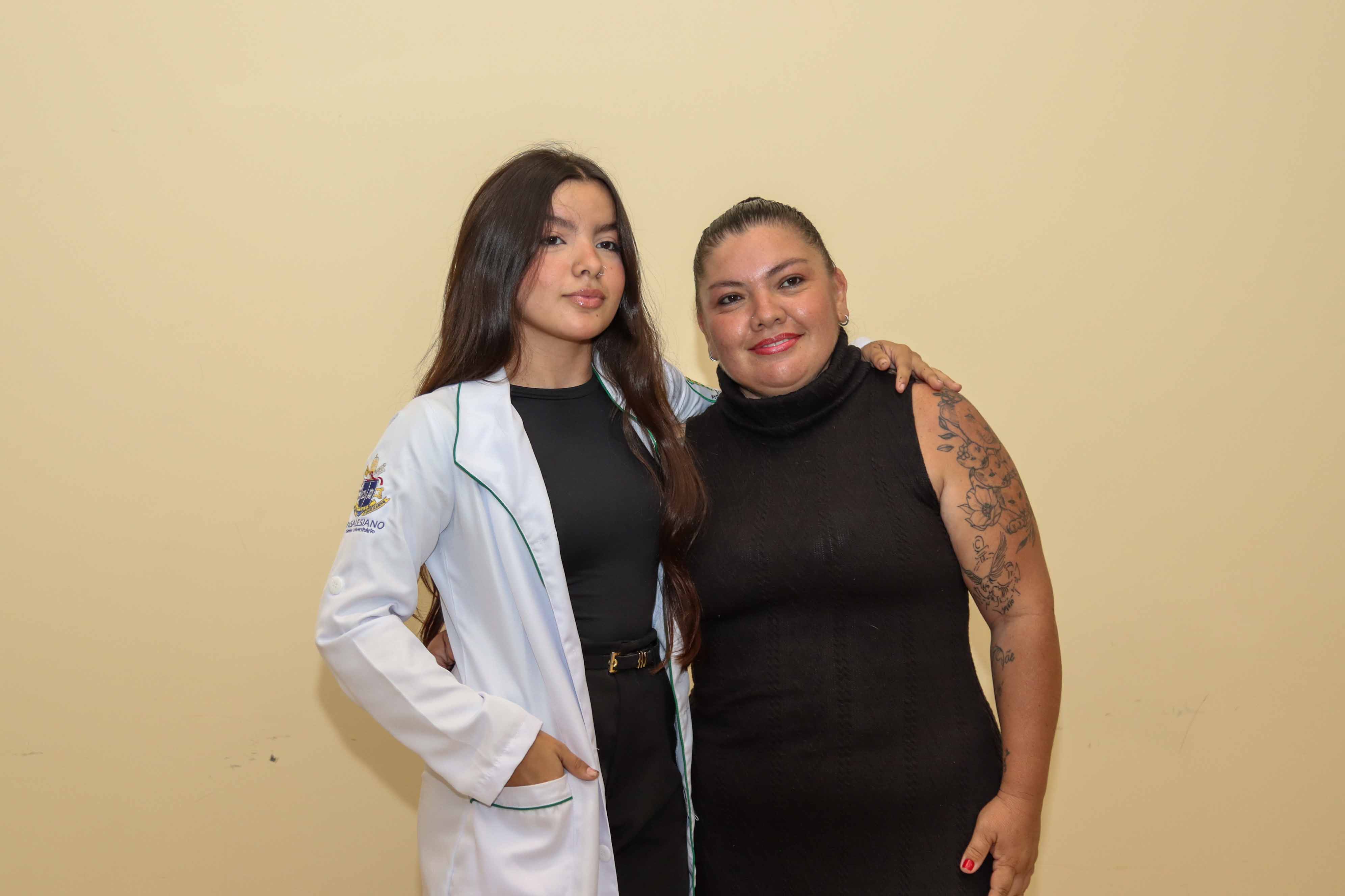 O momento mais aguardado da noite foi a entrega dos jalecos, quando os estudantes receberam a vestimenta das mãos de padrinhos e madrinhas. Mais do que um uniforme, o jaleco simboliza o compromisso com a ética, a responsabilidade e o cuidado com o próximo.