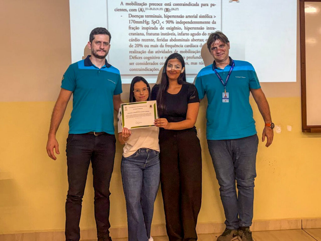 Na terça-feira à tarde, foi realizado o IV Encontro Científico de Fisioterapia, com apresentações de trabalhos desenvolvidos pelos alunos dos cursos de Fisioterapia e Enfermagem. O evento evidenciou a integração entre ensino, pesquisa e prática profissional, valorizando o protagonismo estudantil na produção científica.