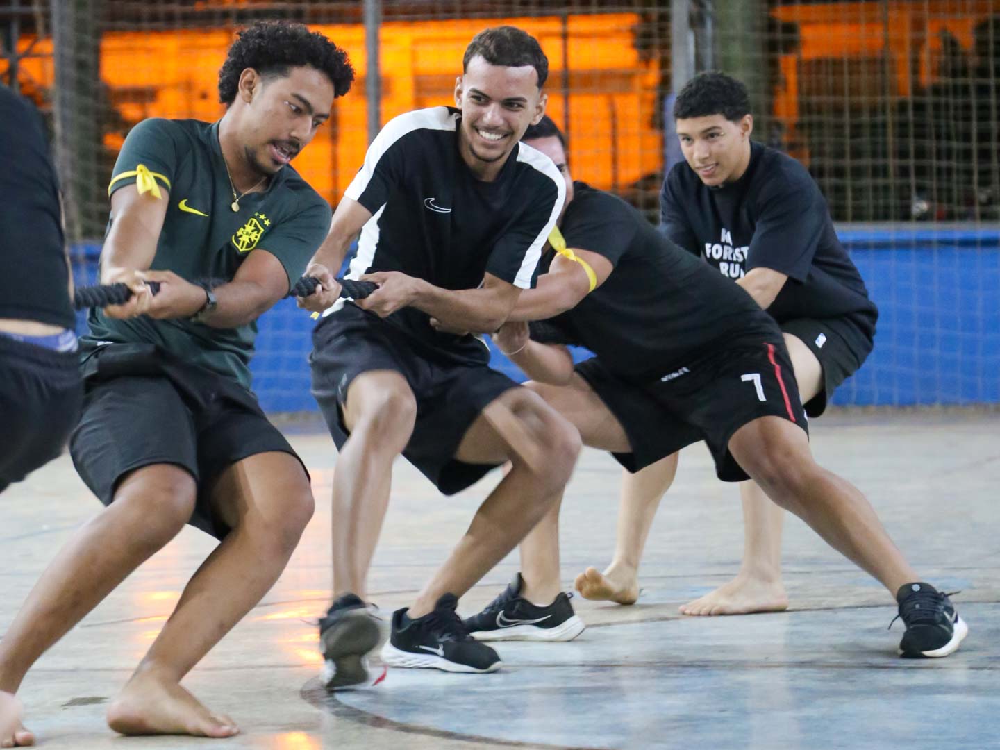 O momento foi marcado por integração, dinamismo e espírito esportivo. Veteranos e ingressantes participaram juntos de dinâmicas e brincadeiras planejadas pelos próprios acadêmicos, sob orientação da professora, fortalecendo o vínculo entre as turmas e estimulando valores como cooperação, respeito e trabalho em equipe.