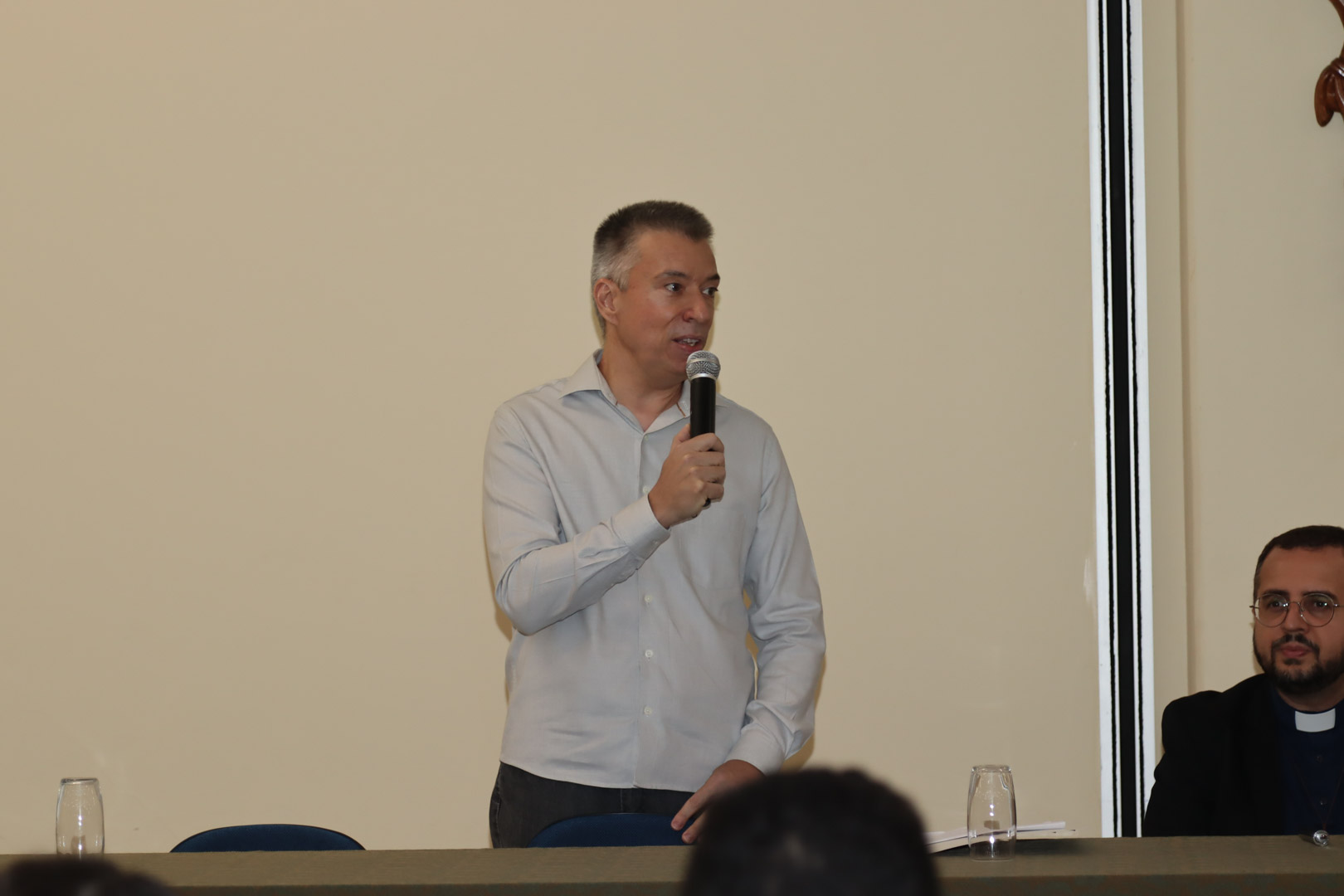 Em seguida, para selar este compromisso com a ética e o cuidado ao próximo, houve a benção dos jalecos pelo Pe. João Marcos de Araújo Ramos, que proferiu palavras de luz e proteção aos futuros profissionais, lembrando que a técnica deve sempre caminhar ao lado da compaixão.