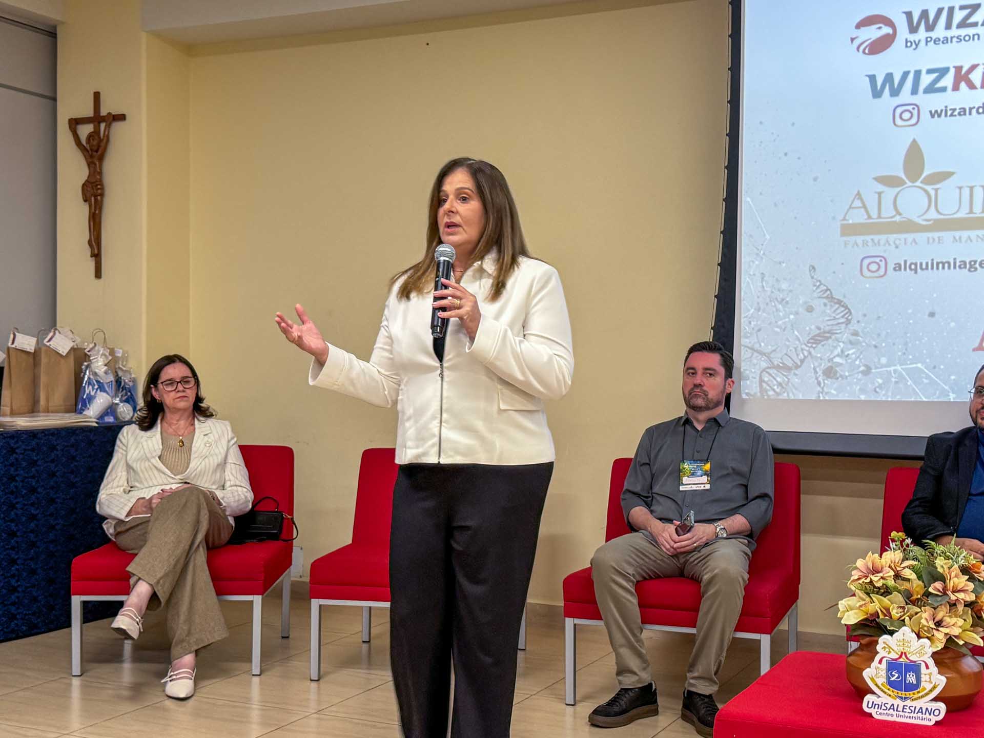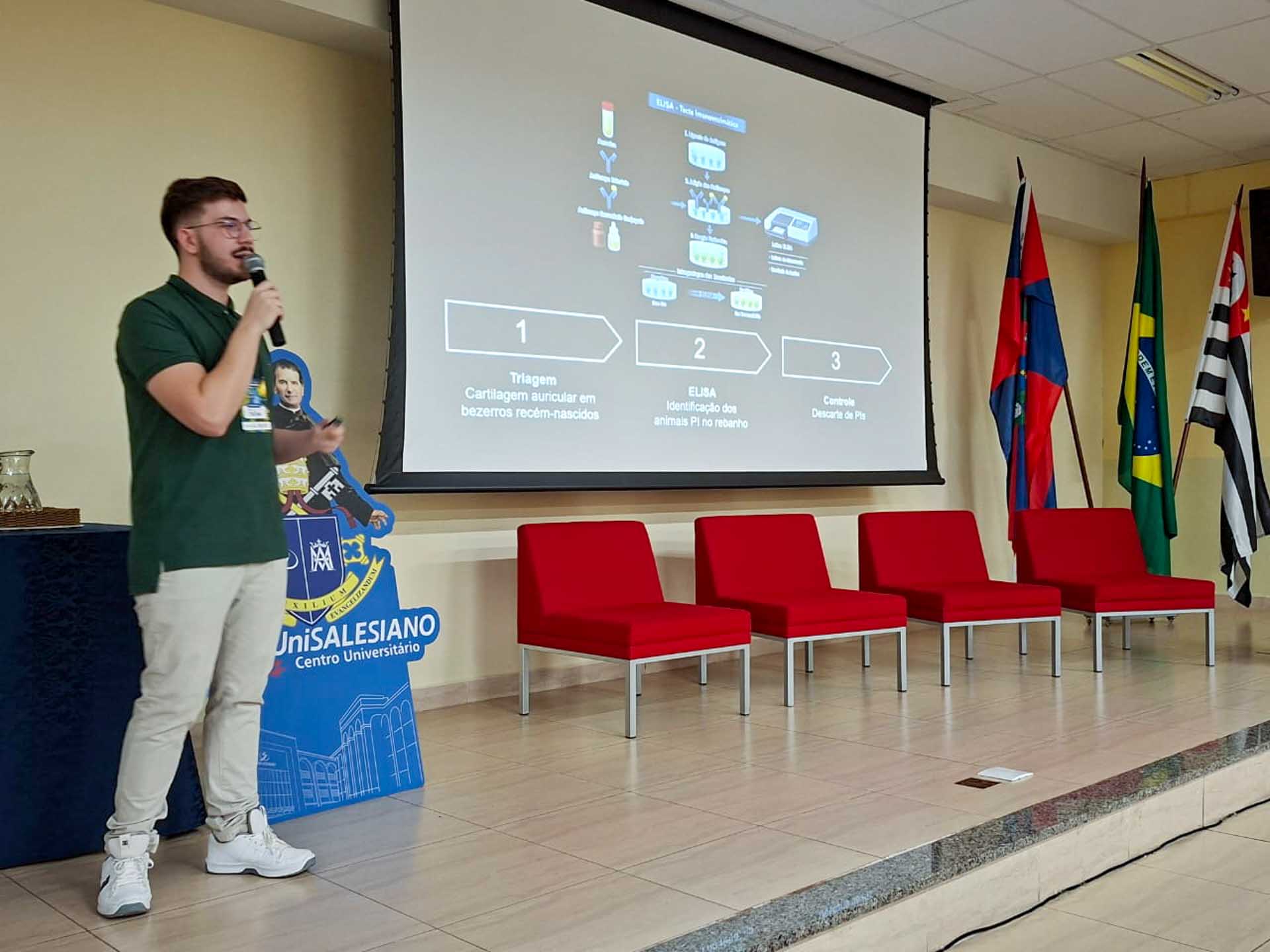 Iniciando as atividades vespertinas, o evento contou com a presença da Drº Felipe Ramos Frassato, ex-aluno do curso de Biomedicina do UniSALESIANO/LINS, que falou sobre a participação do Biomédico na área de Análises Clínicas Veterinárias. Sua palestra foi marcada por uma abordagem prática e atualizada, onde destacou: (i) inovações da área: apresentação de novas tecnologias e métodos diagnósticos que estão transformando o setor; (ii) troca de experiências: compartilhou vivências reais de sua trajetória profissional, enriquecendo o aprendizado dos acadêmicos e profissionais presentes; (ii) panorama do mercado: análise detalhada sobre as oportunidades e o crescimento do mercado, reforçando a importância da especialização biomédica nesse segmento.