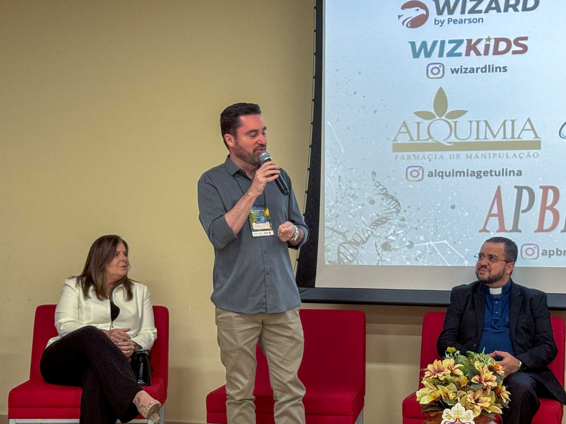 Em seguida, encerrando as atividades matutinas, palestrou o Drº Wellerson Rodrigo Scarano com abordagem no tema “Biomedicina na Pesquisa Científica” que, de forma brilhante, conduziu uma apresentação que foi muito além da teoria acadêmica. Sua fala promoveu o despertar do espírito cientista nos participantes, instigando a curiosidade e o rigor investigativo necessários para quem deseja desbravar o laboratório e a ciência aplicada. Além de mergulhar nos avanços da profissão, o Drº Wellerson, recém-chegado de um Congresso Internacional em San Diego/EUA, compartilhou valiosas dicas de sucesso na área, orientando a nova geração sobre como construir uma carreira sólida e ética em um mercado cada vez mais competitivo e inovador.