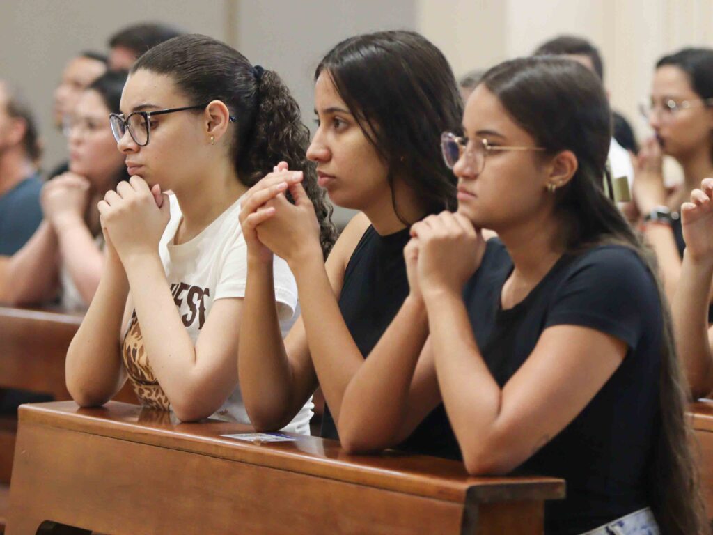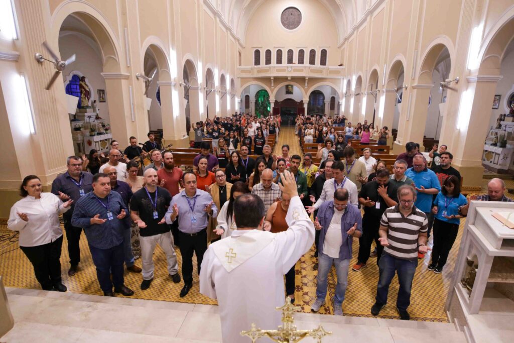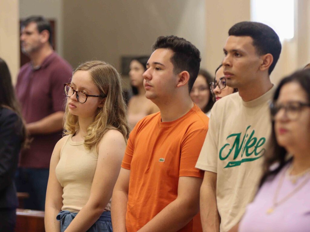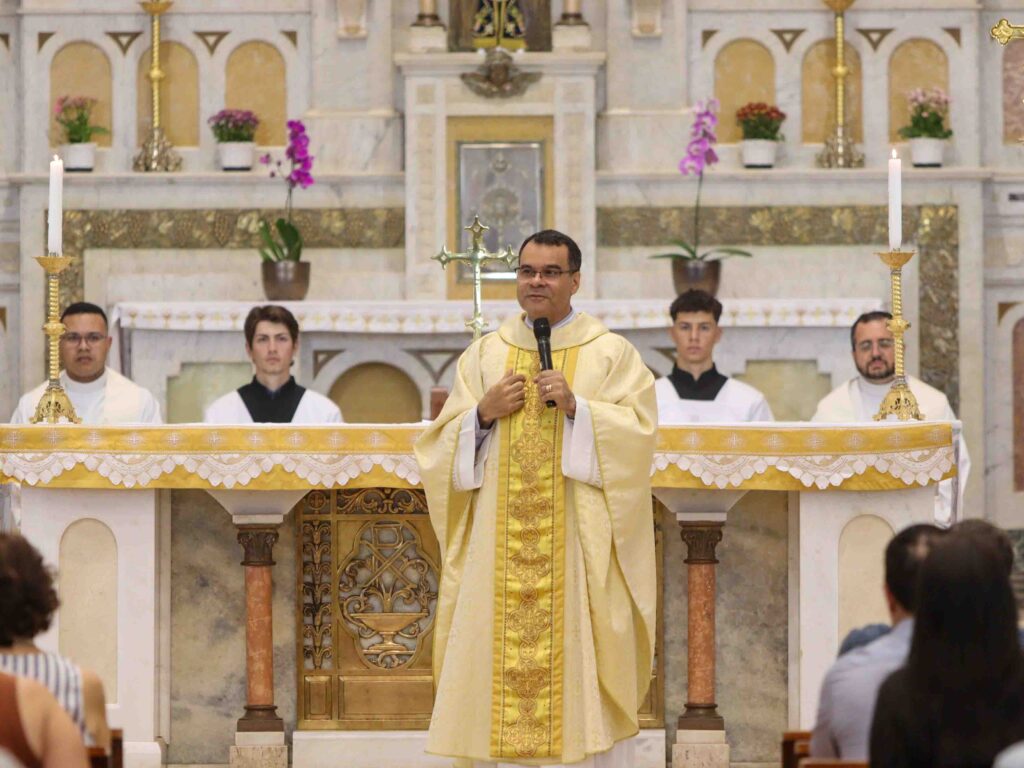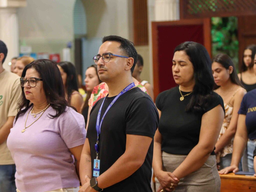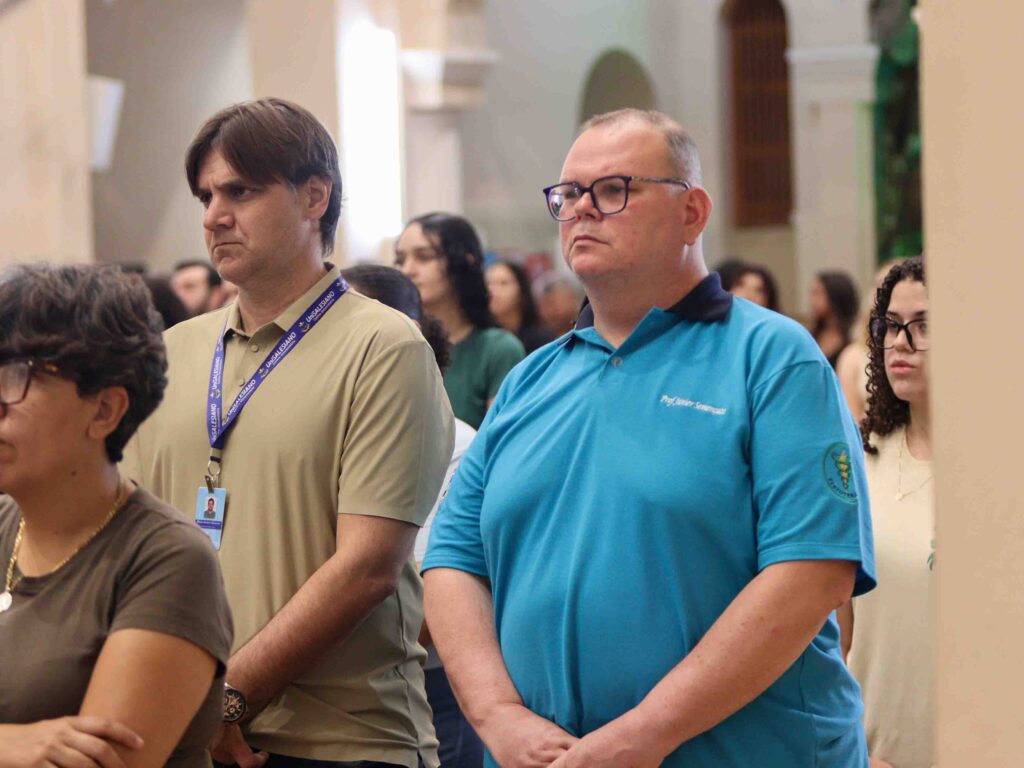Durante a celebração, Pe. Ademir destacou a importância do amor como base da missão de educar, afirmando que “o amor supera as dificuldades e lecionar é compartilhar o amor.”