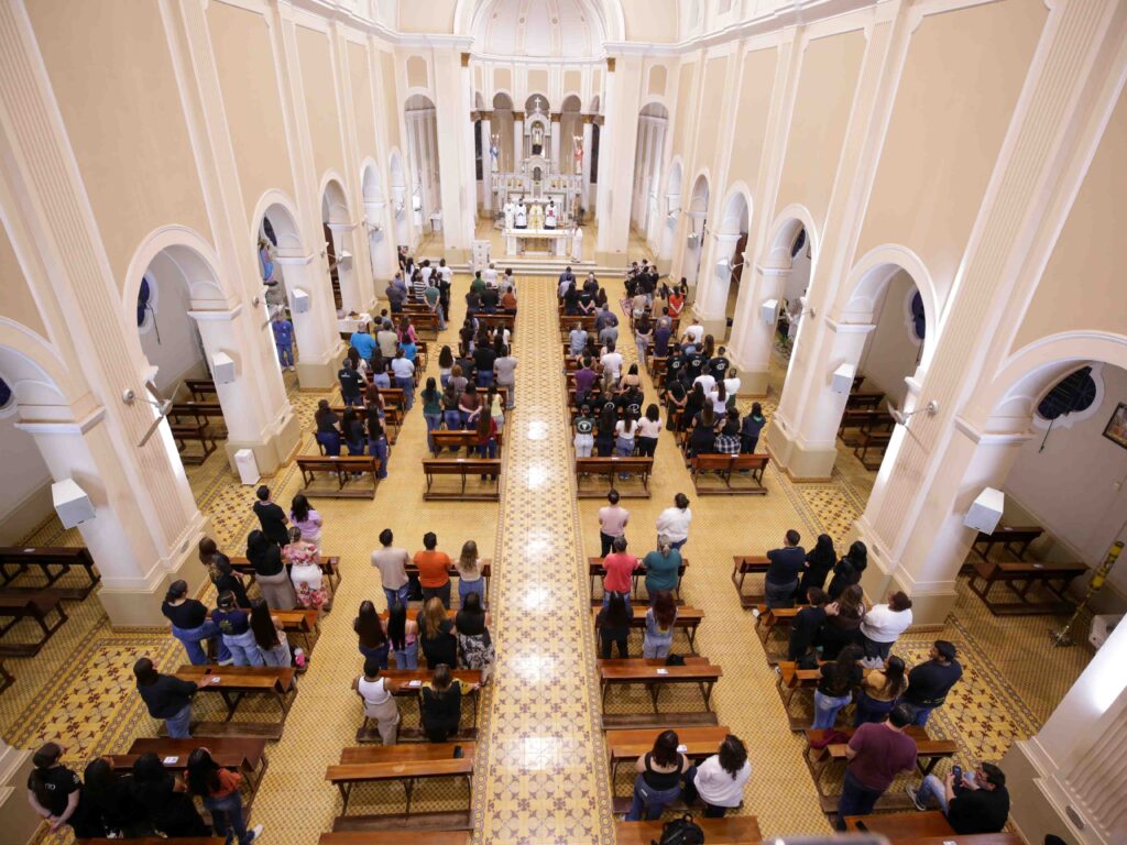 O UniSALESIANO teve a alegria de receber o Inspetor em exercício da Missão Salesiana de Mato Grosso, Pe. Ademir Lima de Oliveira, para a celebração da missa especial em homenagem ao Dia do Professor, realizada na Igreja São João Bosco, na noite de 14 de outubro. A missa contou também com a concelebração do Diretor, Pe. João Marcos, e do Pároco e Coordenador de Pastoral, Pe. Denilson Bezerra, em um momento de fé, gratidão e comunhão.