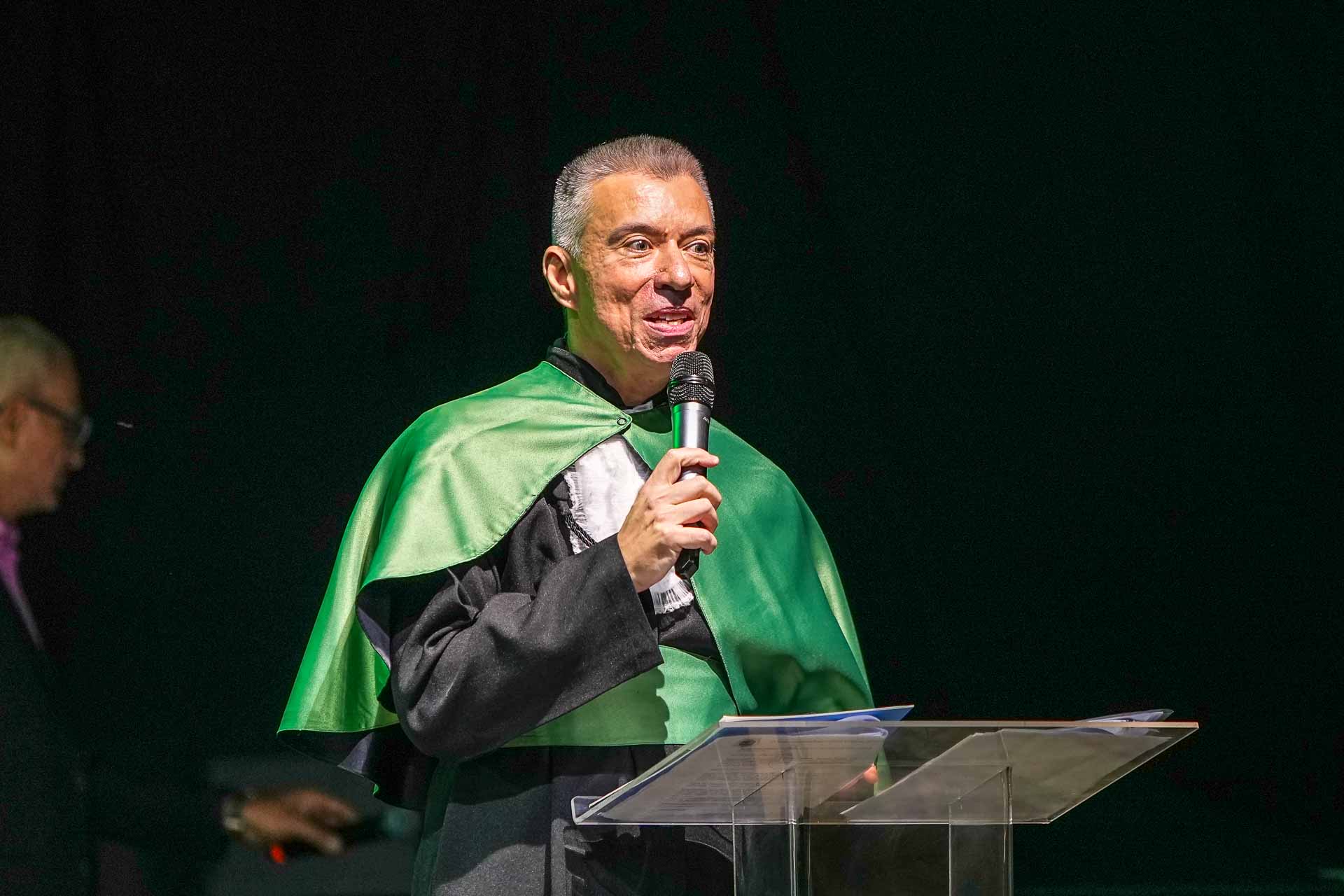 A palavra do paraninfo foi conduzida pelo Prof. Silvio Marques, que deixou uma mensagem inspiradora aos formandos, ressaltando a importância do compromisso ético, da atualização constante e da sensibilidade humana no exercício das profissões da saúde.
